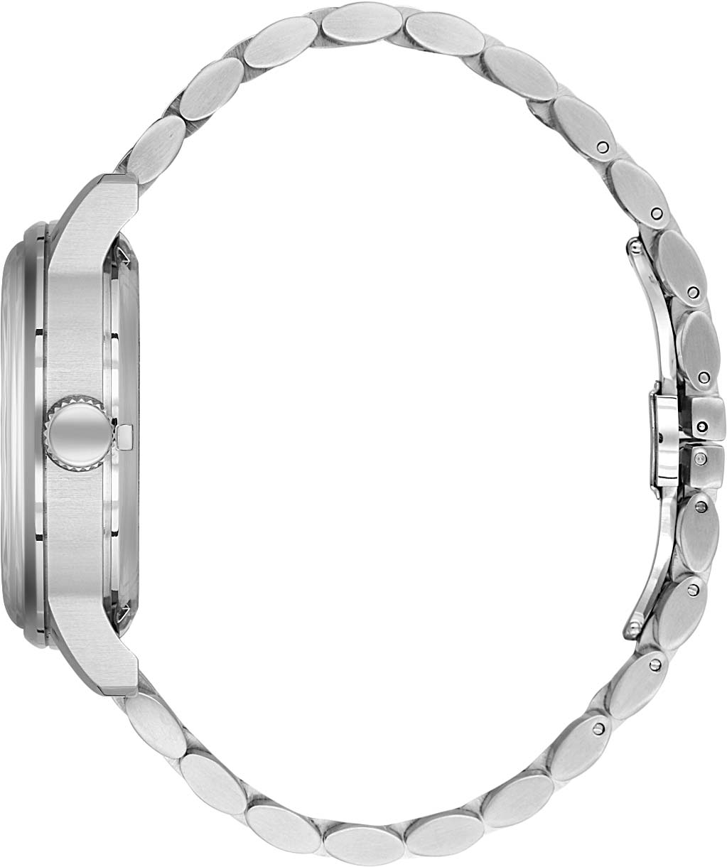 Luxury. Автоматические мужские часы. Циферблат с узором украшен декоративными стрелками с болтами. 24-х часовой формат времени вынесен на отдельный циферблат и дополнен сменой изображений дня и ночи. Дополнительный циферблат с часовой и минутной стрелками, с метками в виде штрихов. Дата вынесена на отдельный циферблат. Рифленая заводная головка. Стальной браслет с матовой и полированной отделкой. Раскладывающаяся застежка.