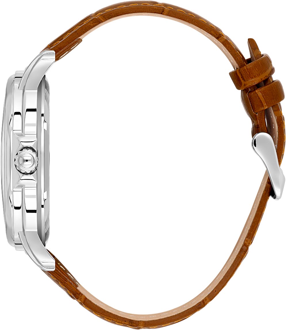 Эти скелетонизированные часы непременно окажут на вас свое влияние. Почувствуйте пульсацию времени. Мужские автоматические скелетонизированные часы. Круглый стальной корпус c матовой и полированной отделкой. Гильошированный циферблат с прозрачным окошком дополнен фирменным логотипом. Накладные метки в виде штрихов и римских цифр. Листовидные стрелки в стиле Feuille с люминесцентным покрытием, которое светится в темноте после непродолжительной зарядки на свету. Рифленая заводная головка с защитой. Удобный кожаный ремешок с классической застежкой.