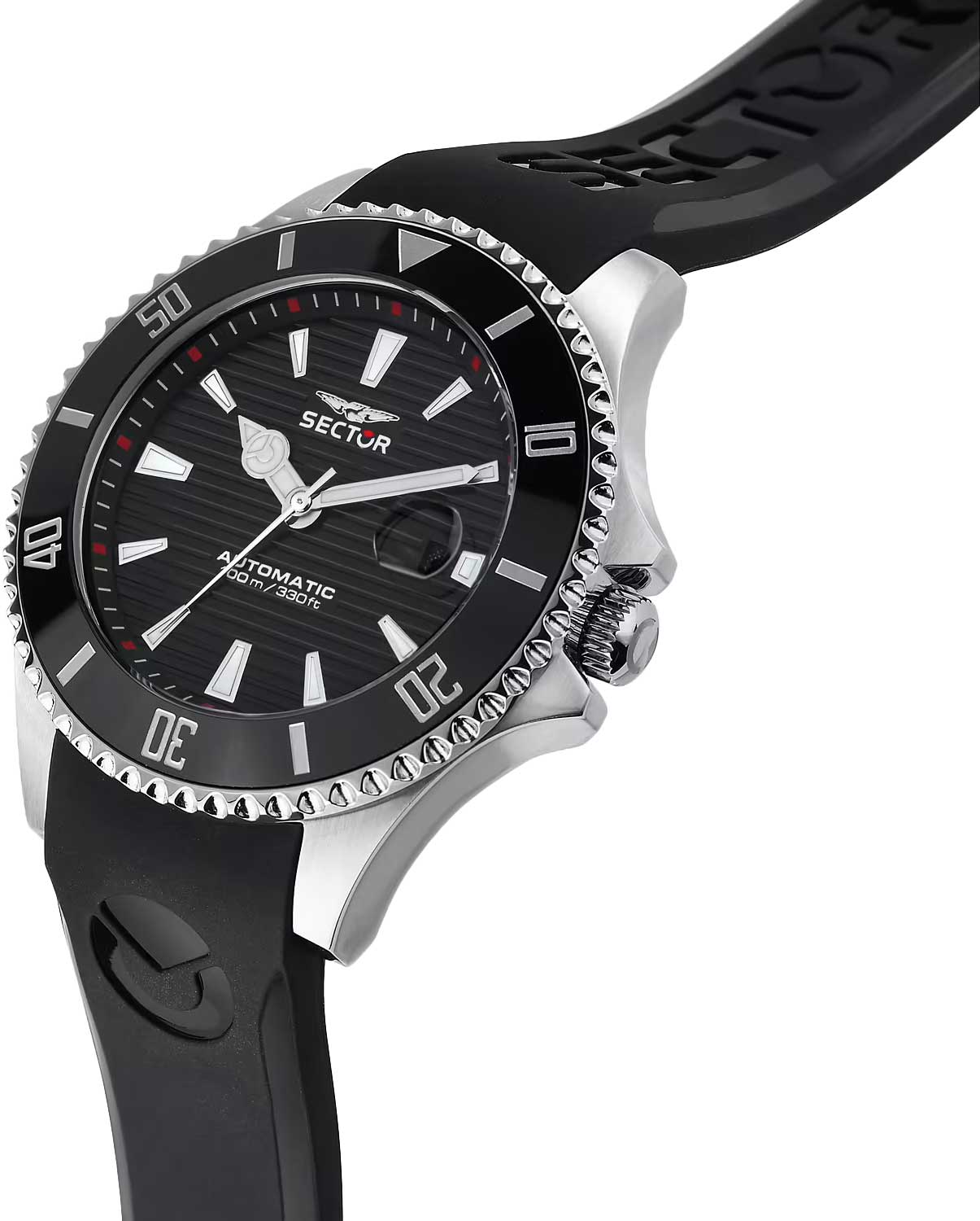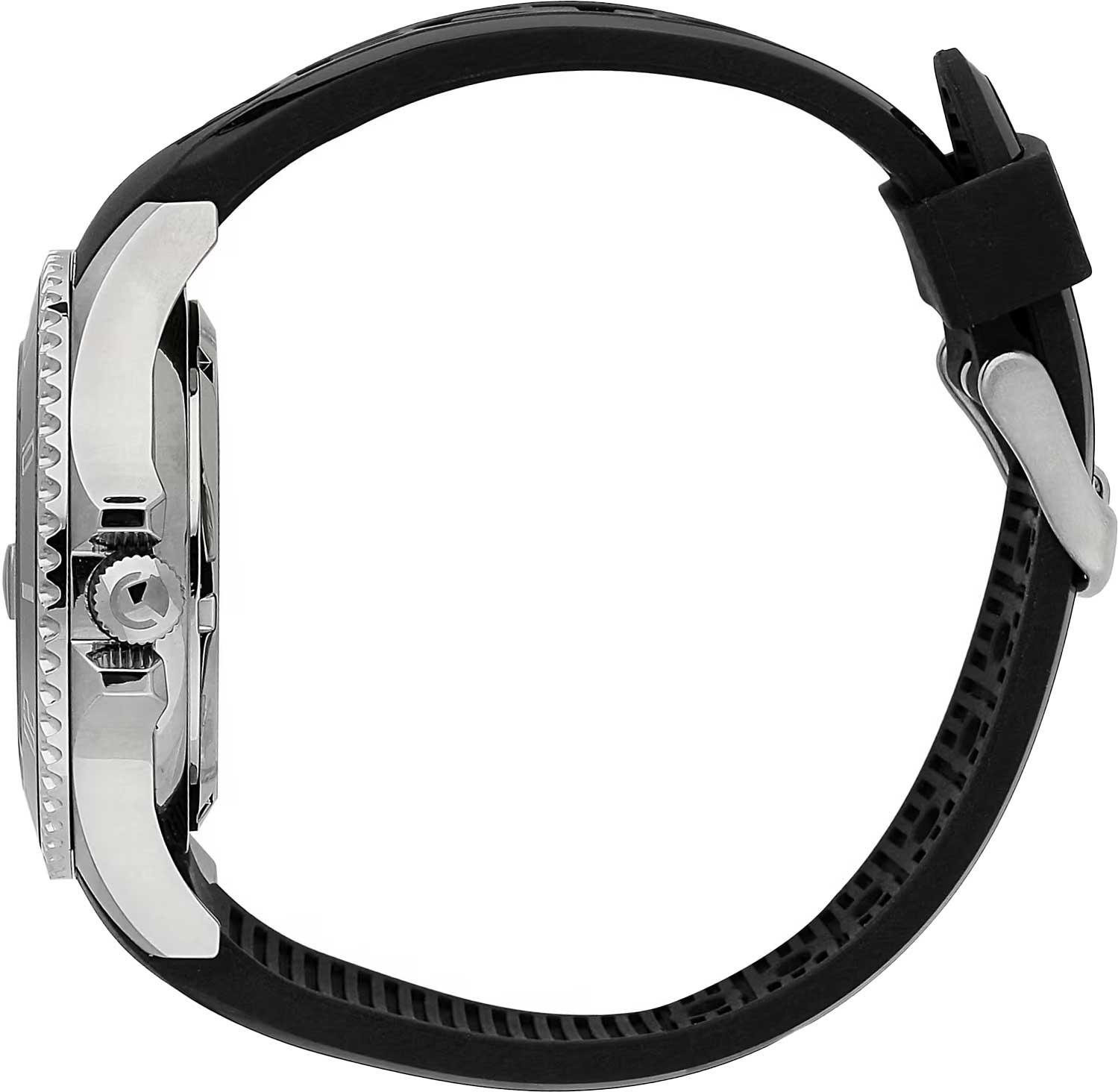 вставкой вращается в одном направлении. Заводная головка с защитой. Завинчивающаяся задняя крышка. Ремешок с классической застежкой.