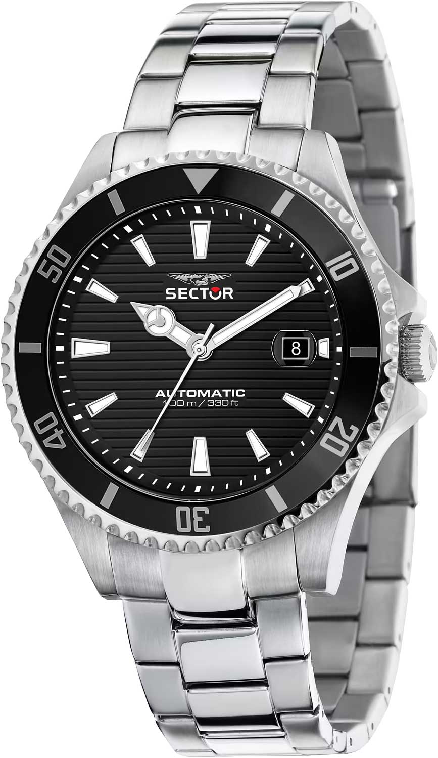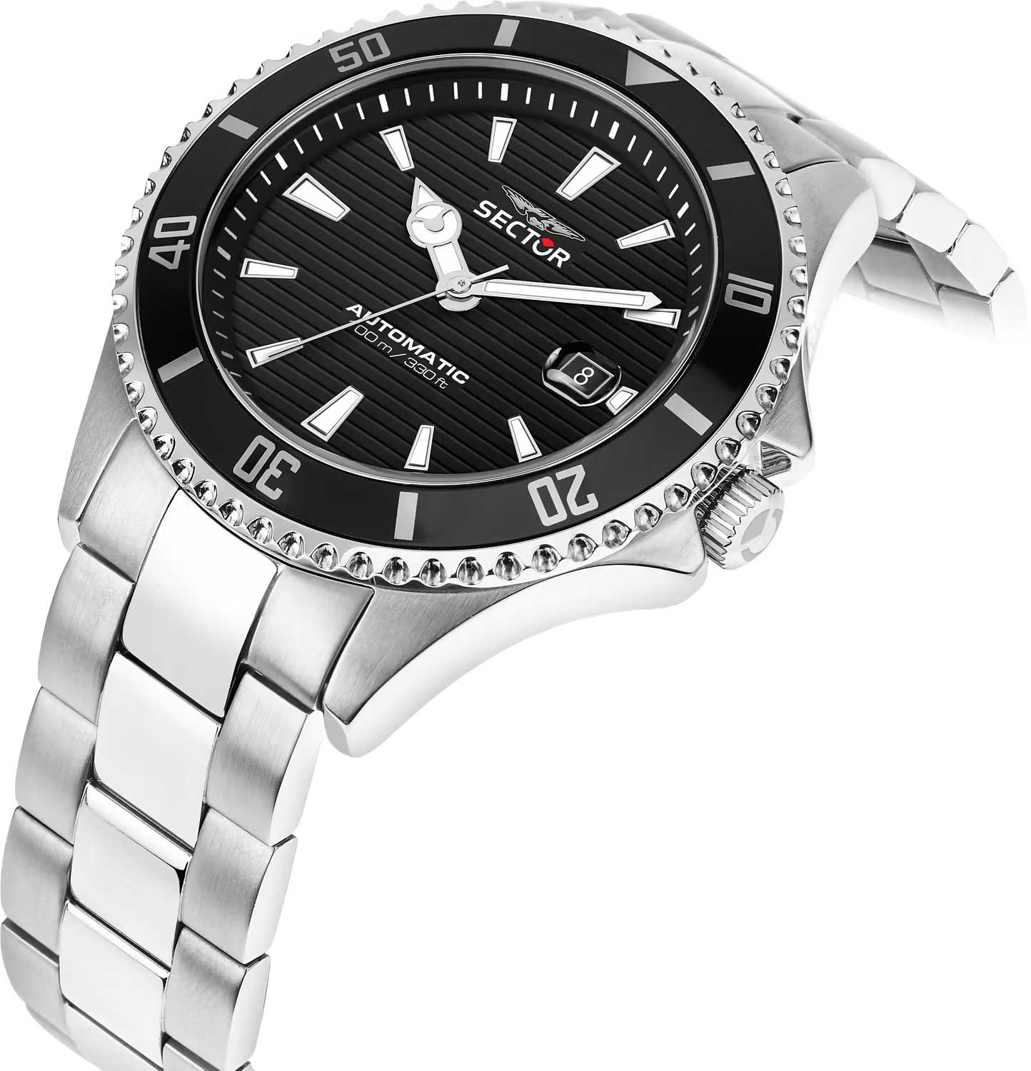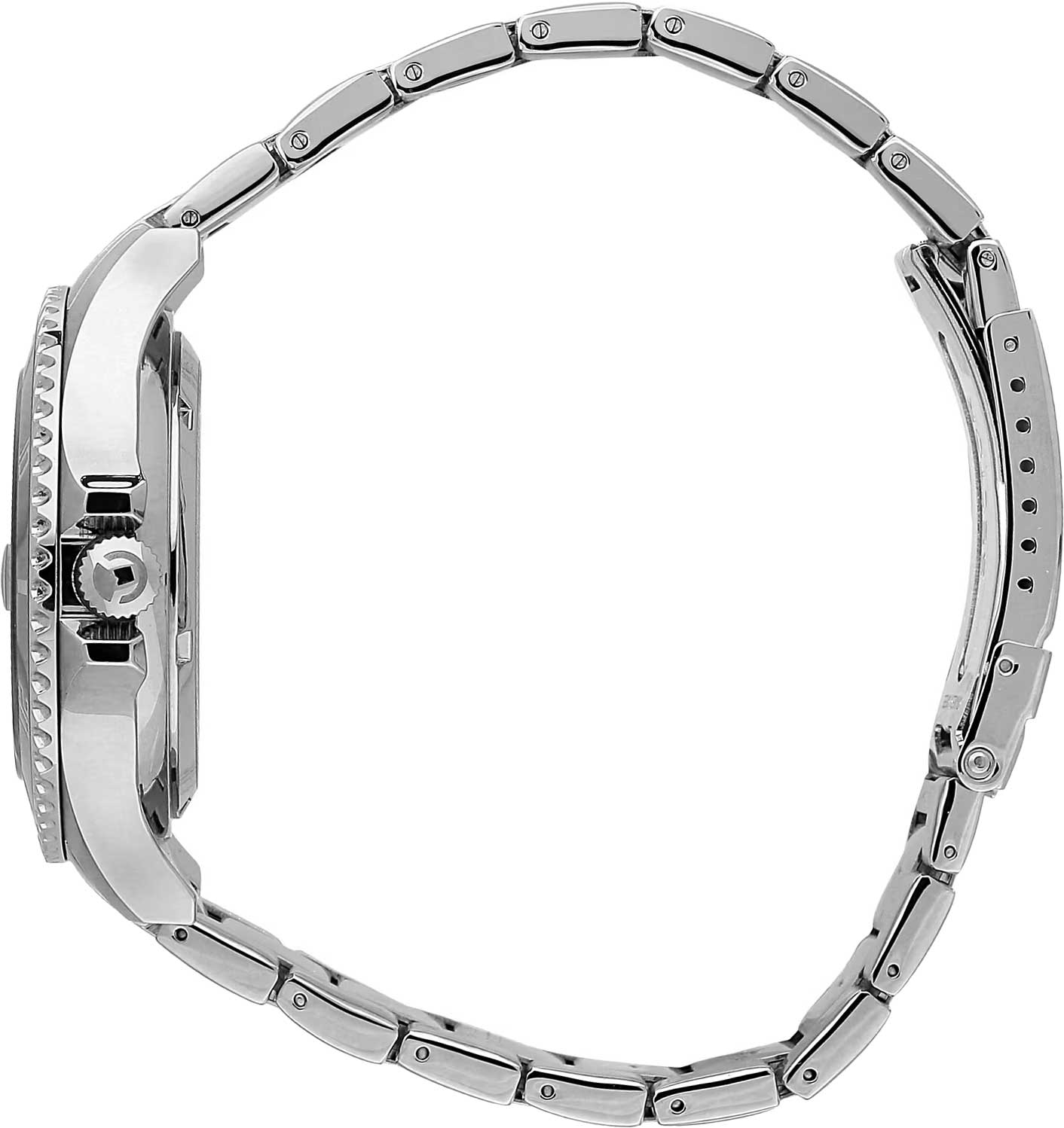 вставкой вращается в одном направлении. Заводная головка с защитой. Завинчивающаяся задняя крышка. Браслет с раскладывающейся застежкой. Застежка с системой блокировки.