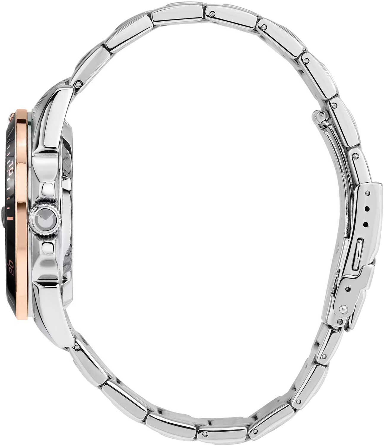 Мужские механические часы. В механизме 21 камень, частота 21600 полуколебаний в час. Запас хода 42 часа. Функция stop-second. Возможность ручного завода. Циферблат с метками в виде штрихов выполнен по технологии Sunray (солнечные лучи). Окошко даты с увеличительным стеклом находится в положении 3 часа. Заводная головка с защитой. Браслет с раскладывающейся застежкой. Застежка с системой блокировки.