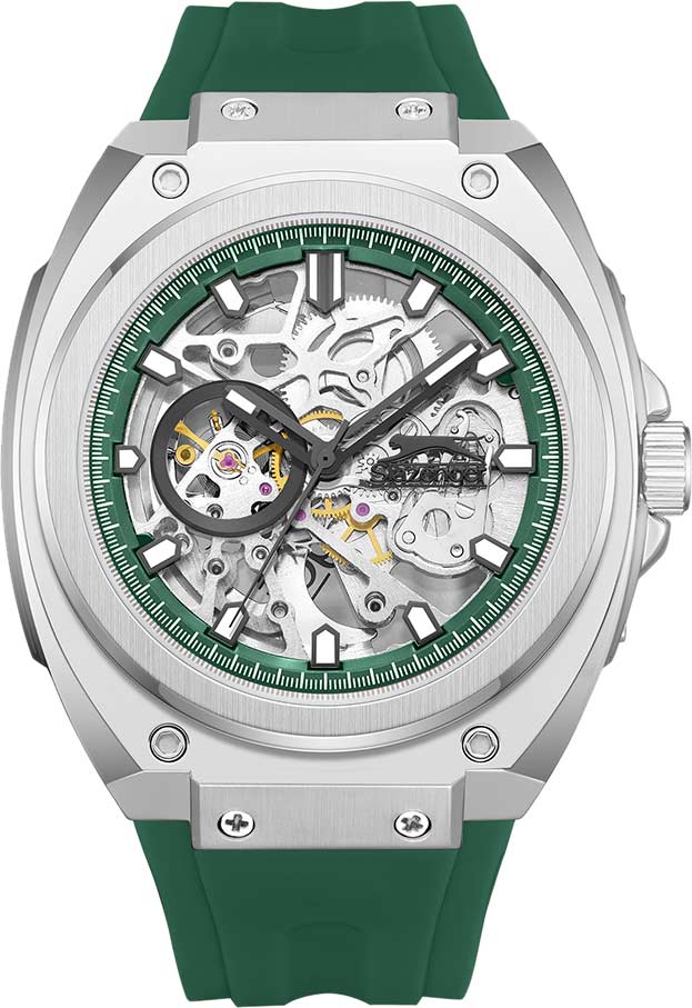 Потрясающий аксессуар станет завершающим штрихом в создании городского мужского образа. Скелетонизированные мужские механические часы. Бочкообразный корпус из суперметалла. Циферблат с логотипом бренда и метками в виде штрихов защищен минеральным стеклом. Метки и стрелки с люминесцентным покрытием, которое светится в темноте после непродолжительной зарядки на свету. Прозрачная задняя крышка. Рифленая заводная головка с защитой. Удобный силиконовый ремешок с классической застежкой.