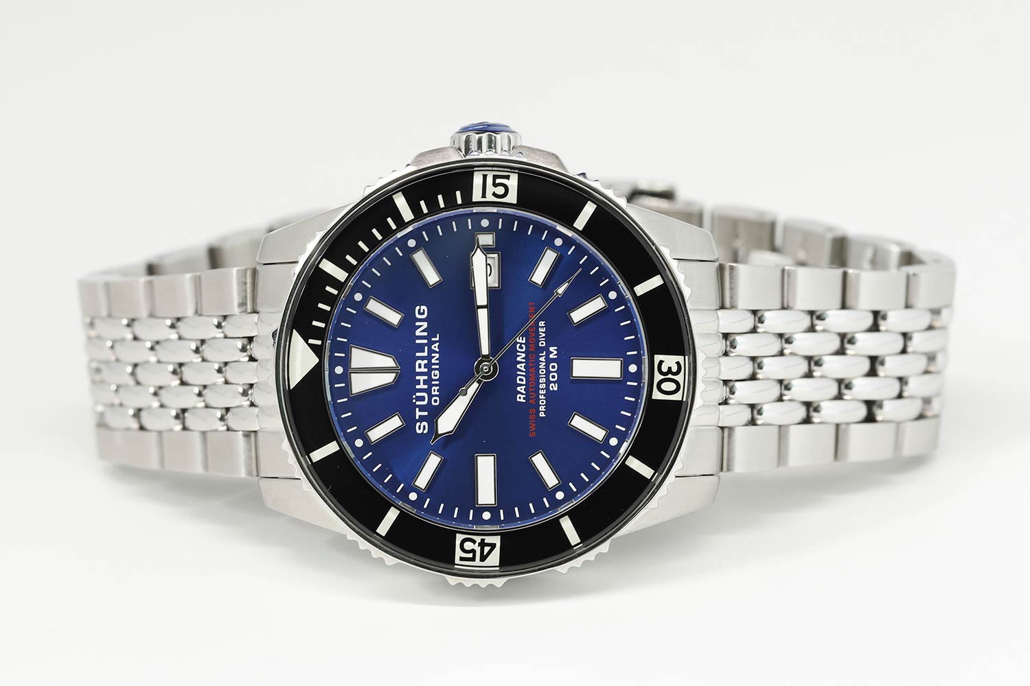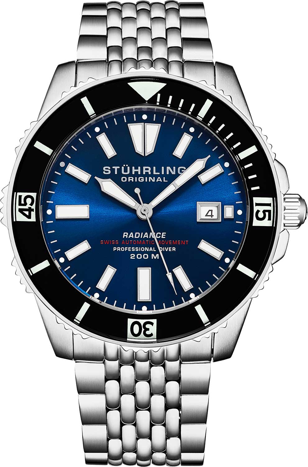 Швейцарский механизм этих часов не позволит упустить ни одной важной минуты. Radiance. Мужские часы. Циферблат выполнен по технологии Sunray (солнечные лучи). Метки в виде штрихов. Окошко даты находится в положении 3 часа. Заводная головка с защитой. Браслет с раскладывающейся застежкой.