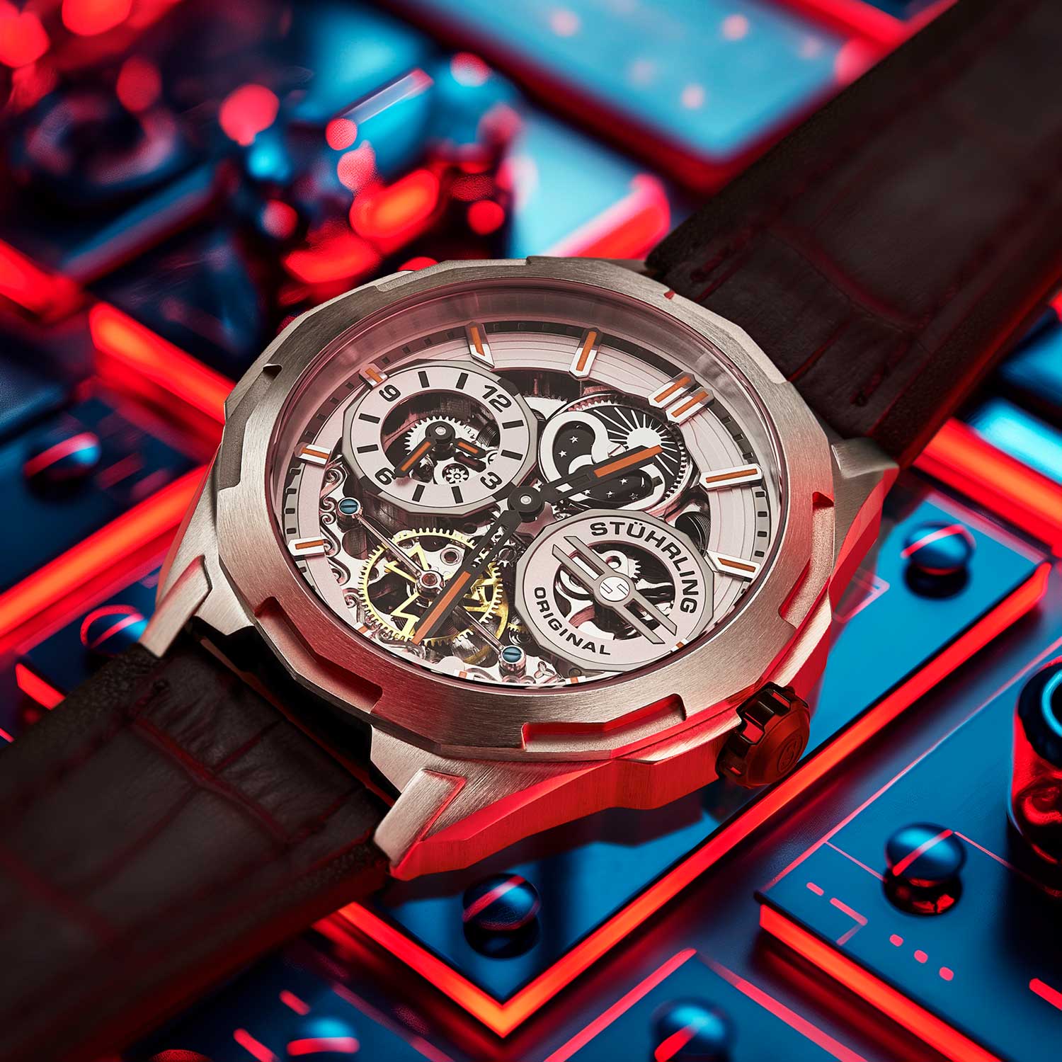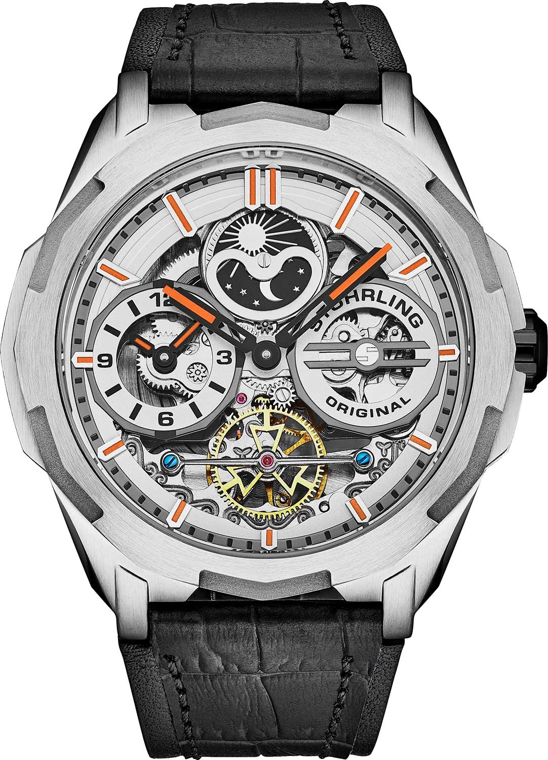 Эти наручные часы созданы с намерением привлечь внимание и идеально впишутся в повседневный мужской образ.Скелетонизированные мужские механические часы с автоподзаводом Navigator. В механизме 22 камня,частота 21 600 полуколебаний в час. Запас хода 40 часов. Стальной корпус c сатинированной поверхностью. Метки в виде штрихов. Секундная стрелка отсутствует. Второй часовой пояс вынесен на отдельный циферблат в положении 9 часов. Индикатор день/ночь в положении 12 часов. Завинчивающаяся задняя крышка со стеклом Krysterna. Заводная головка с черным IP