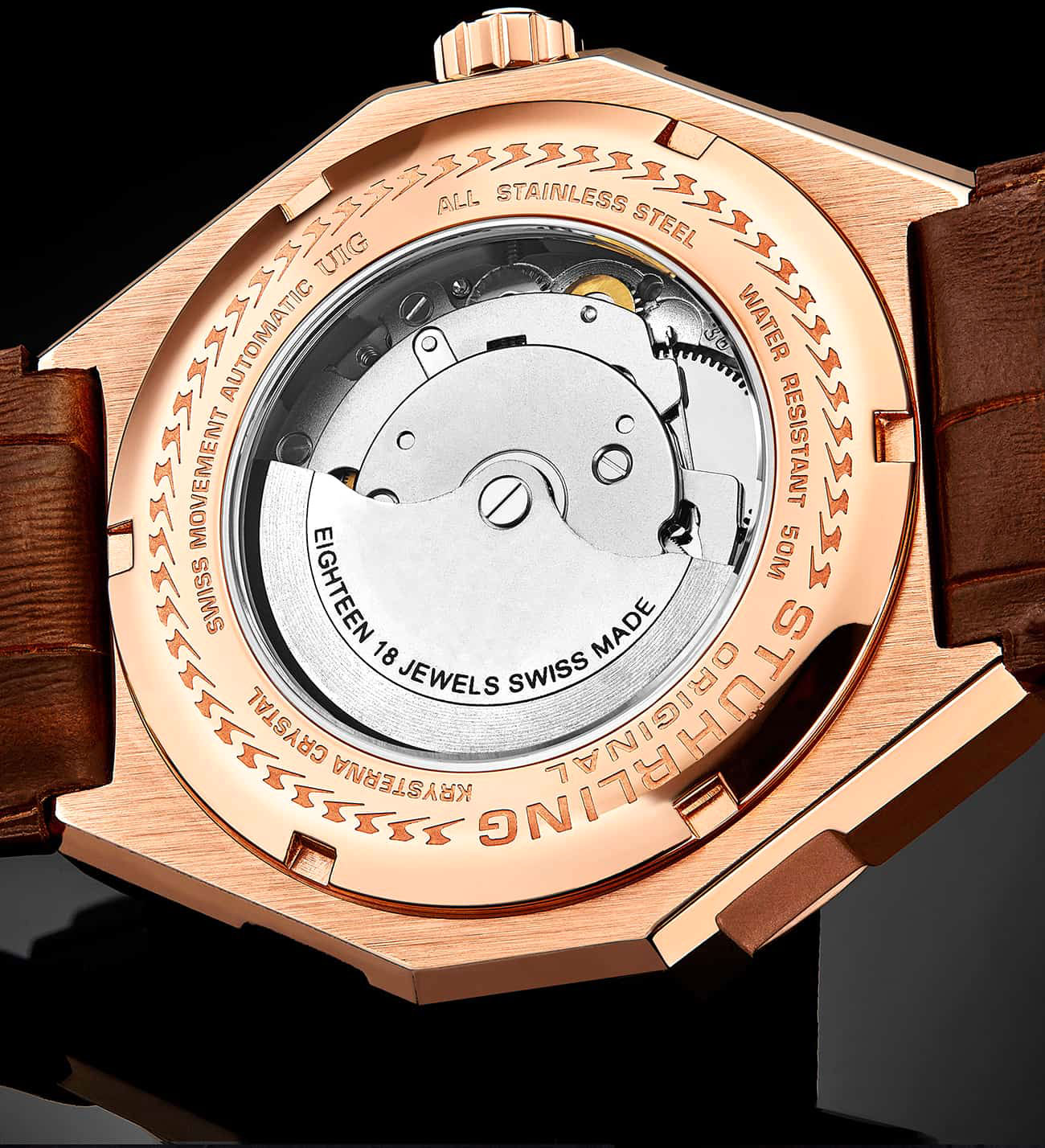 Отдавая дань уважения стилю и чувственности итальянского часового искусства, Gio - это швейцарские часы, которые пронизаны этим стилем. Открытая задняя крышка демонстрирует внутреннее устройство этих часов-скелетонов, а стекло Krysterna делает их неприступными для внешнего воздействия. Швейцарский автоматический механизм, работающий за счет ежедневного движения запястья и руки. Ремешок из натуральной кожи с тиснением под кожу крокодила и шириной 24 мм обеспечивает комфорт и изящество. Swiss Automatic Gio. Скелетонизированные часы. В механизме 18 камней. Корпус с сатинированными поверхностями. Рифленый безель из нержавеющей стали. Сатинированный латунный циферблат. Накладные метки в виде штрихов. Завинчивающаяся стальная задняя крышка со стеклом Krysterna. Рифленая заводная головка украшена фирменным логотипом. Ремешок из натуральной кожи.