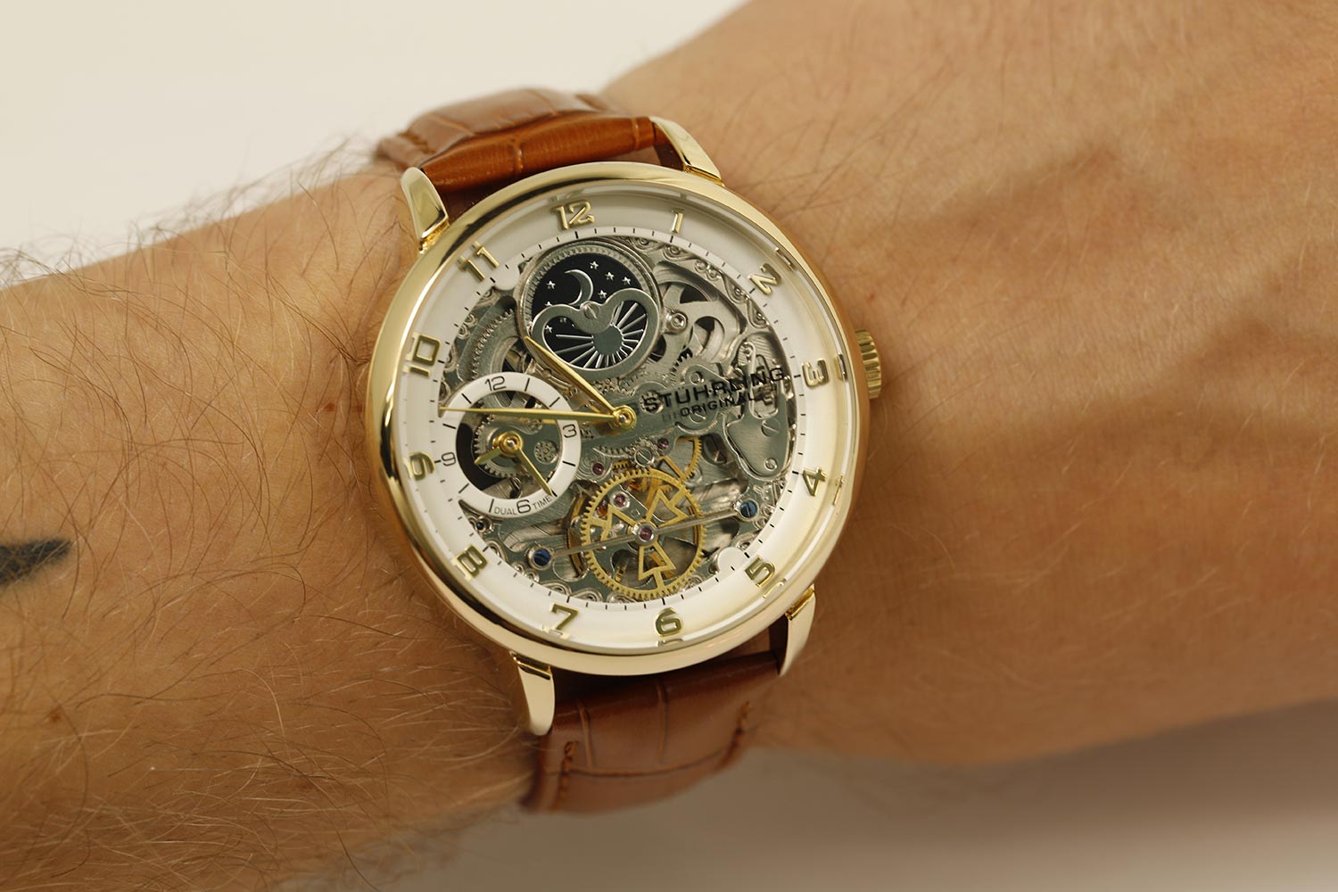 Элегантные черты этих скелетонизированных часов делают их идеальным выбором настоящих мужчин. Automatic. Скелетонизированные часы. Второй часовой пояс. Индикатор день/ночь. Накладные метки в виде арабских цифр. Завинчивающаяся задняя крышка со стеклом Krysterna. Рифленая заводная головка. Ремешок с классической застежкой.