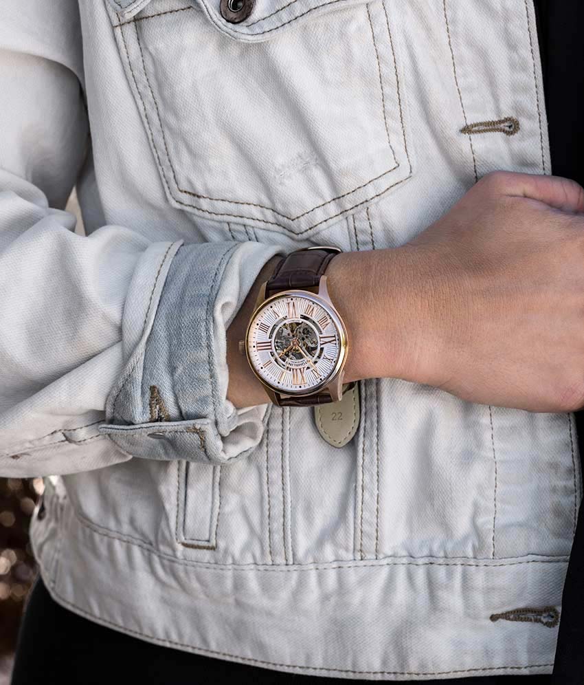 Классические скелетонизированные часы создадут должное впечатление о вас на любой деловой встрече. Atrium. Скелетонизированные часы. Накладные метки в виде римских цифр. Завинчивающаяся задняя крышка со стеклом Krysterna. Ремешок с классической застежкой.