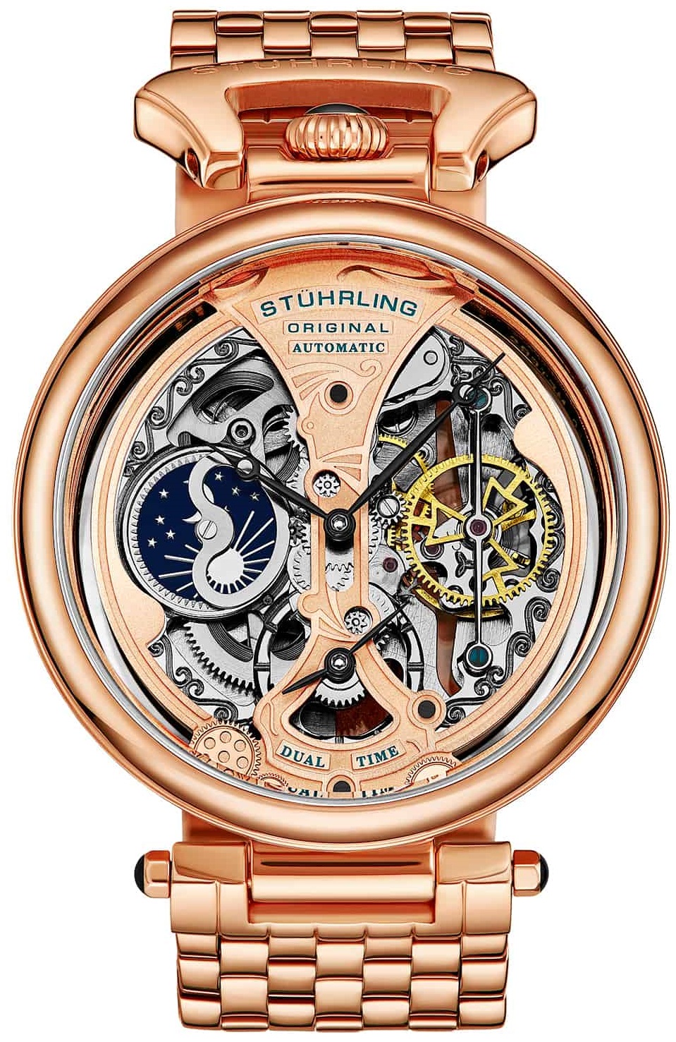 Эти мужские часы откроют вам взор на отточенную работу механических часов. Скелетонизированные часы Emperor's Grandeur. Второй часовой пояс. Индикатор день/ночь. Задняя крышка со стеклом Krysterna крепится на винтах. Заводная головка украшена камнем в форме кабошона и находится в положении 12 часов. Браслет с раскладывающейся застежкой.