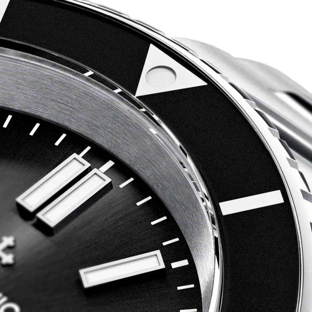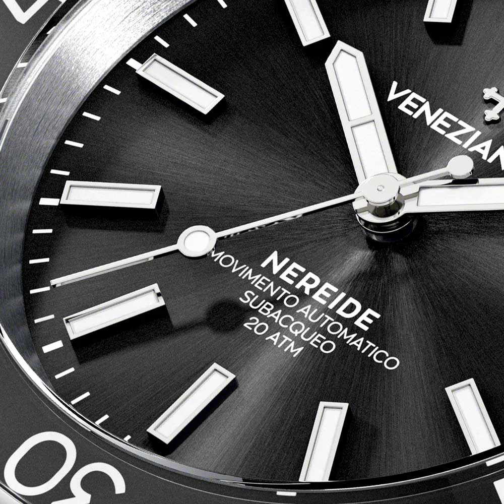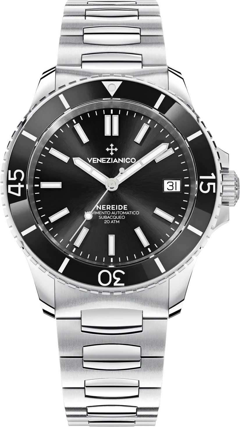 Удобный мужской аксессуар с надежным автоматическим механизмом не позволит упустить ни одной важной минуты вашего времени. Nereide 39. Мужские часы. Вдохновением на создание коллекции послужила подводная лодка итальянского королевского флота Nereide, которая была построена в 1913 году на военно-морской верфи Венеции. В механизме 24 камня, частота 21600 полуколебаний в час. Запас хода 41 час. Возможность ручного завода. Циферблат с метками в виде штрихов выполнен по технологии Sunray (солнечные лучи). Окошко даты находится в положении 3 часа. Безель со стеклянной вставкой BK7 вращается на 120 щелчков в одном направлении. Задняя крышка крепится на 6-ти винтах и украшена выгравированным изображением подводной лодки Nereide. Индивидуальный серийный номер. Завинчивающаяся заводная головка с защитой. Браслет Canova с раскладывающейся застежкой. Для изготовления данного браслета требуется 16 различных форм.