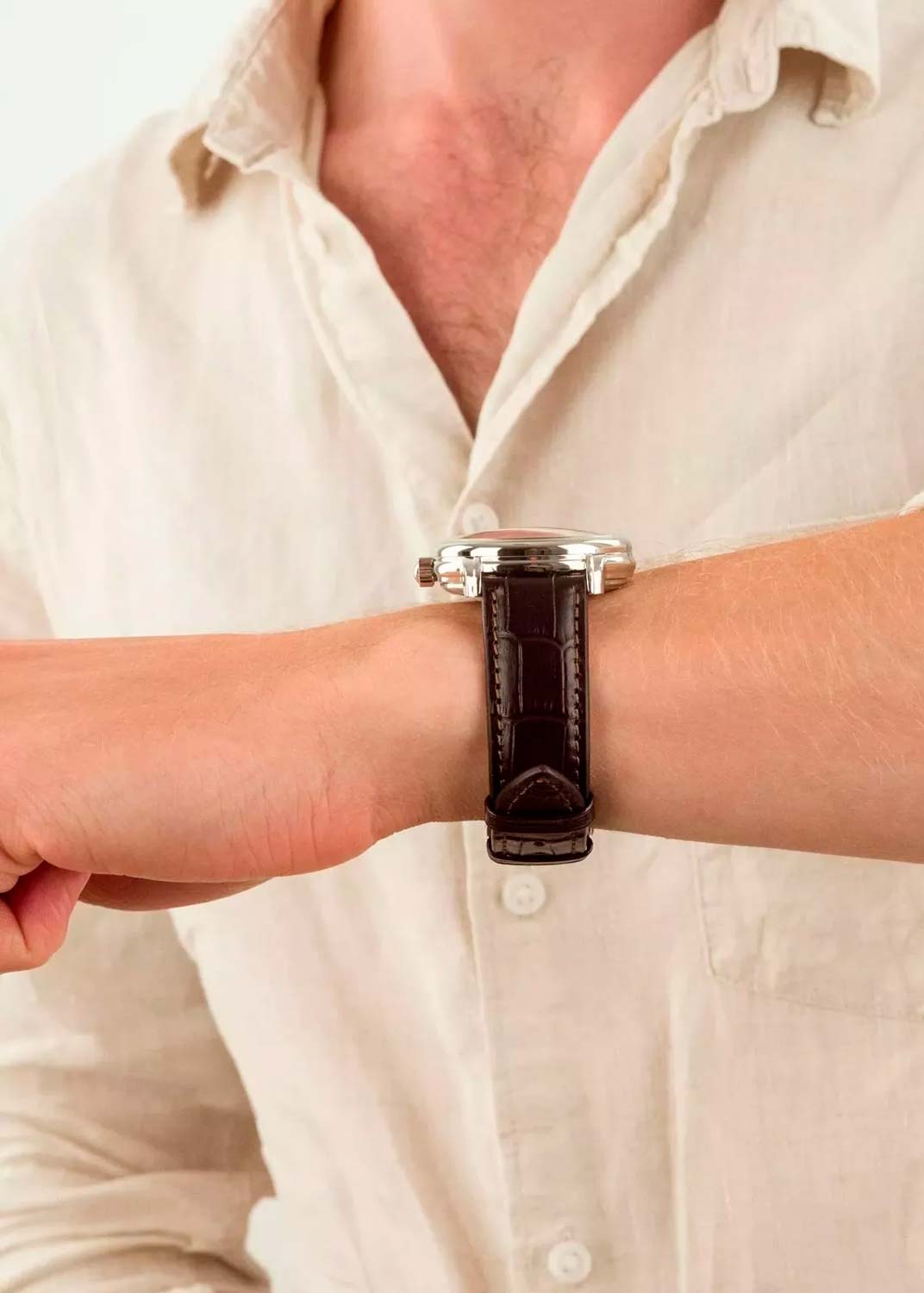 Классика всегда актуальна. Эти часы - лучшее тому подтверждение. LZ127 Graf Zeppelin. В механизме 21 камень. Секундная стрелка вынесена на отдельный циферблат. Сквозь прозрачное окошко на циферблате можно наблюдать за работой механизма часов. Прозрачная задняя крышка.