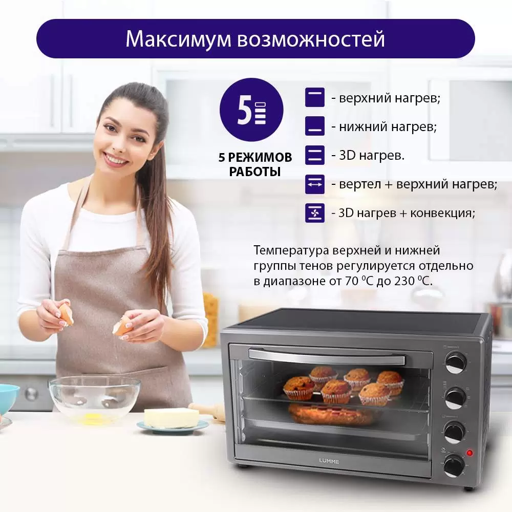 - Режимыверхний и нижний нагрев; верхний нагрев; нижний нагрев; конвекция