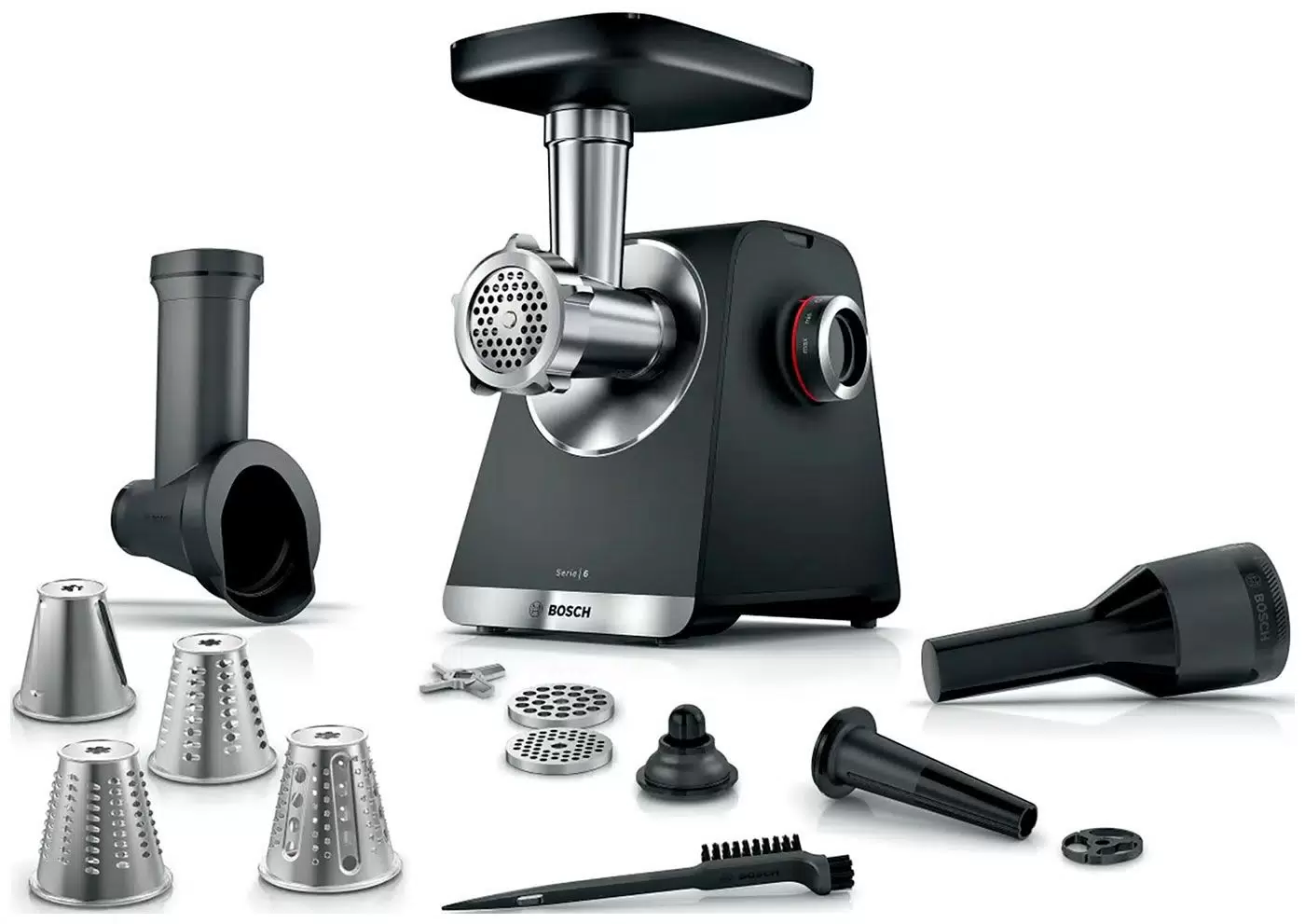 - Комплект поставкидокументация; загрузочный лоток; корпус овощерезки; насадка-терка; насадка-терка для нарезки ломтиками; насадка-шинковка крупная; насадка-шинковка мелкая; насадка для кеббе; насадка для колбас; нож; опорный диск для колбасного шприца; перфорированный диск крупный; перфорированный диск мелкий; перфорированный диск средний; толкатель; шнек; щетка для очистки