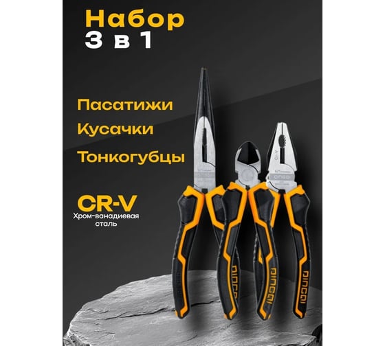 Набор 3 в 1 DINGQI плоскогубцы, кусачки, длинногубцы, сталь CR-V, 23002