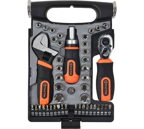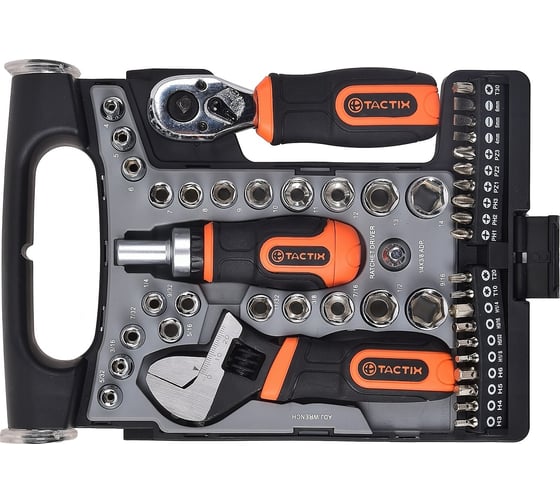 Набор головок 1/4, 3/8, вставок и ключа разводного TACTIX из 46-ти предметов 900155
