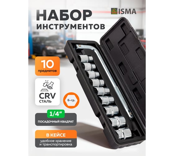 Набор инструментов 10 предметов ISMA 1/2 (6гр.) -4104-5(63397) ISMA-4104-5(63397)