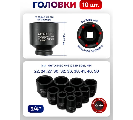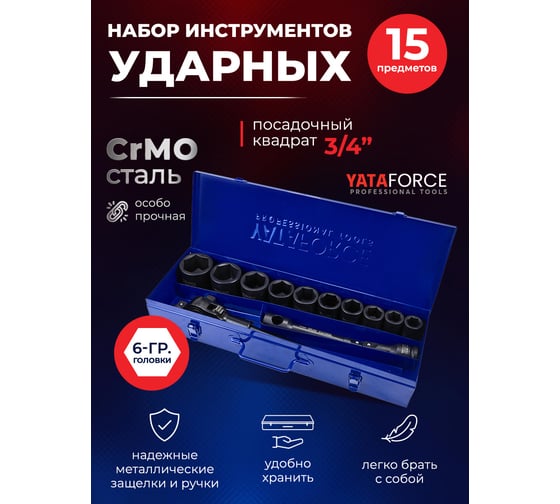 Набор инструментов 15 предметов 3/4 (6 граней) YATAFORCE YF-6143-5MPB(66172)