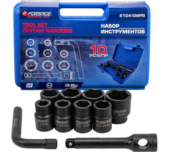 Набор инструментов Forsage 10 предметов 3/4 (6гр.) F-6104-5MPB(63804)