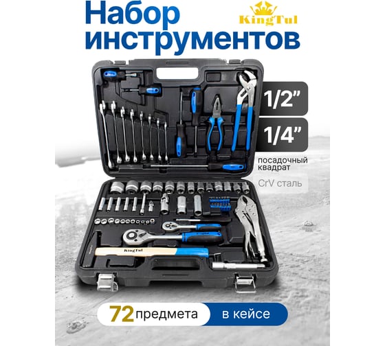 Набор инструментов KingTul 72 предмета 1/2,1/4 (6гр.)(6-27мм) KT-72(2151)