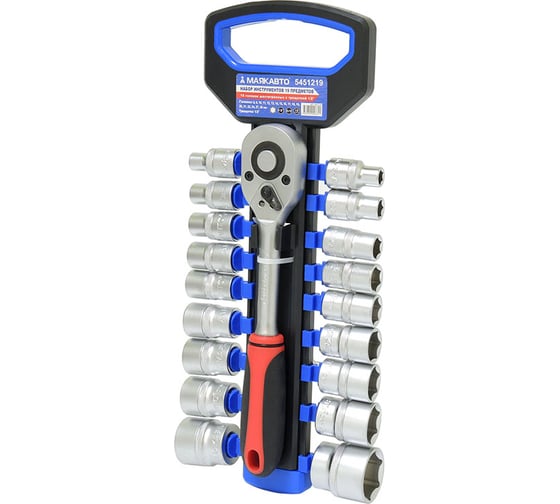 Набор инструментов МаякАвто 19 предметов: 18 головок 6гр. 8-30мм с трещоткой 1/2 . 1/10 5451219