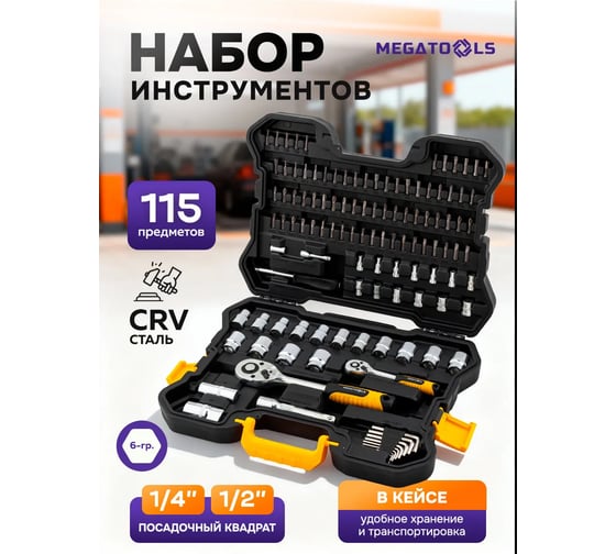 Набор инструментов MEGATOOLS 115 предметов 1/4, 1/2, 6гредметов MT-41151-5(63407)