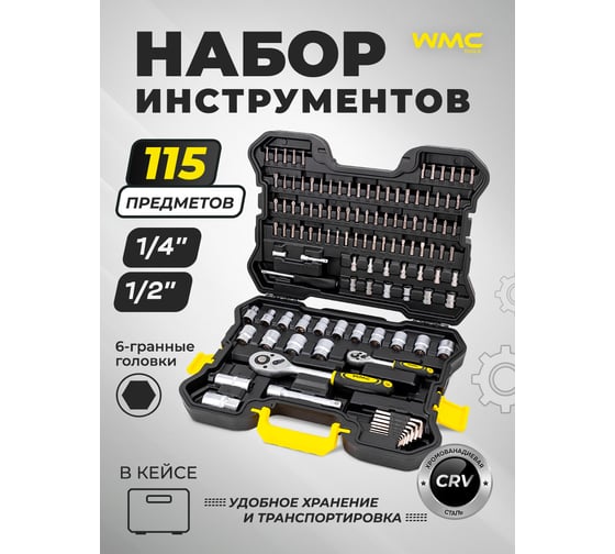 Набор инструментов WMC TOOLS 115 предметов 1/4, 1/2 (6гр.) WMC-41151-5(62899)