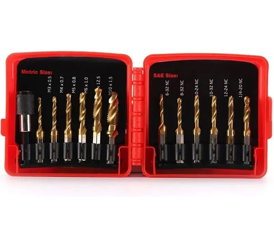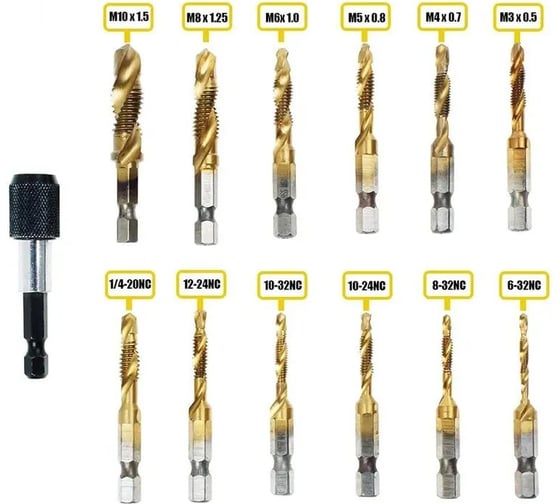 Набор из 13 комбинированных сверл и метчиков Vitatools из быстрорежущей стали 1/4 дюйма с быстросменным адаптером nabor-13-kombinirovannyh-sverl
