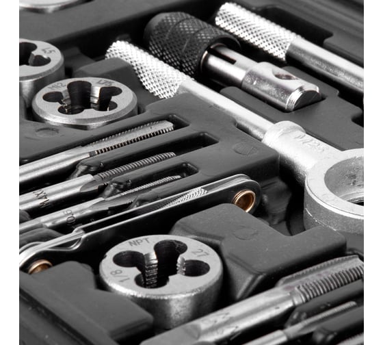 - Комплектацияметчики, плашки, вороток, плашкодержатель, отвертка, резьбомер, держатель для метчика Т-образный