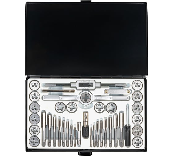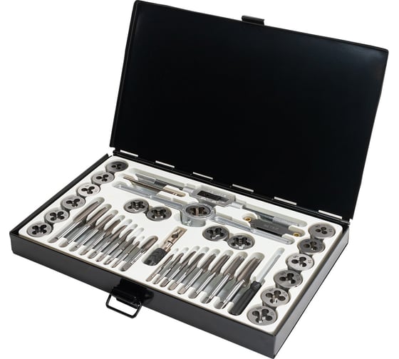 - Комплектацияметчики, плашки, вороток для метчиков, плашкодержатель, метчикодержатель, резьбомер, отвертка