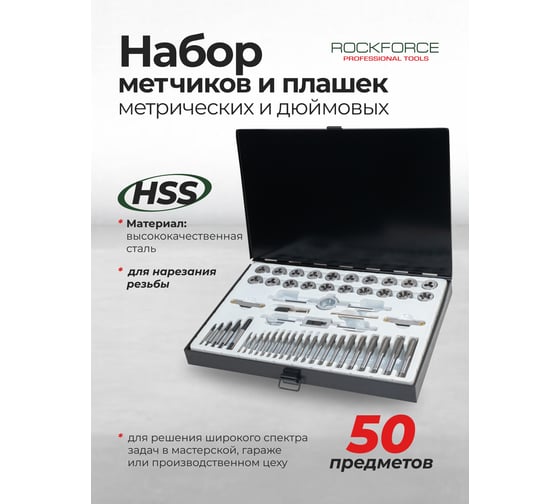 Набор метчиков и плашек Rockforce 50 предметов RF-M050-3(63007)