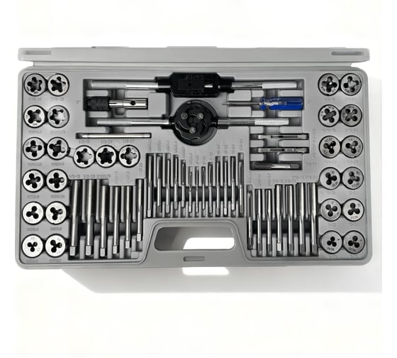 - Комплектацияметчики, плашки, вороток, плашкодержатель, отвертка, резьбомер, держатель для метчика Т-образный