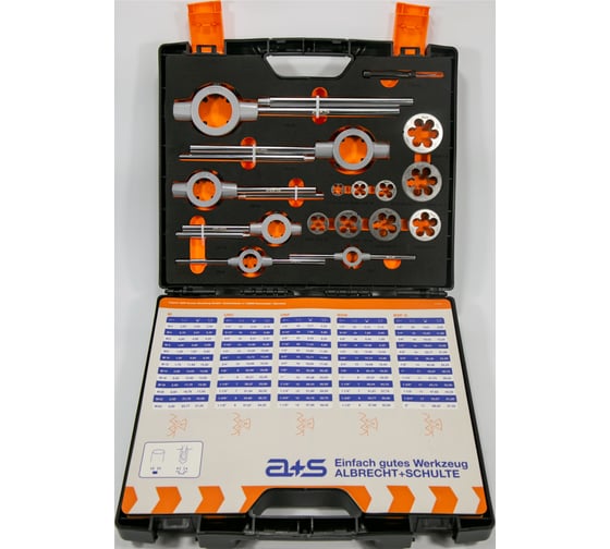 - Комплектацияметчики, плашки, вороток для метчиков, плашкодержатель, метчикодержатель, резьбомер, отвертка