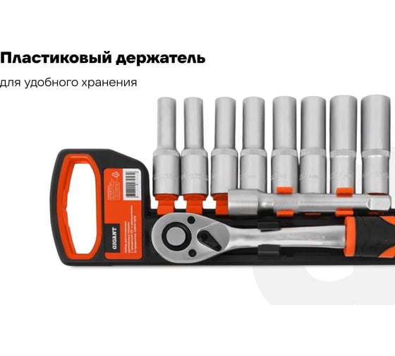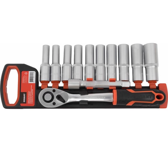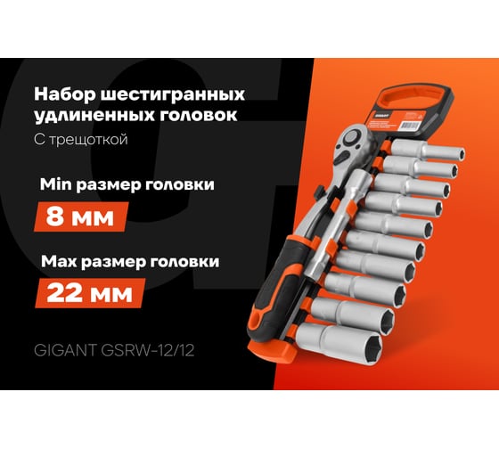 Набор шестигранных удлиненных головок Gigant с трещоткой 1/2" и удлинителем, 12 предметов GSRW-12/12