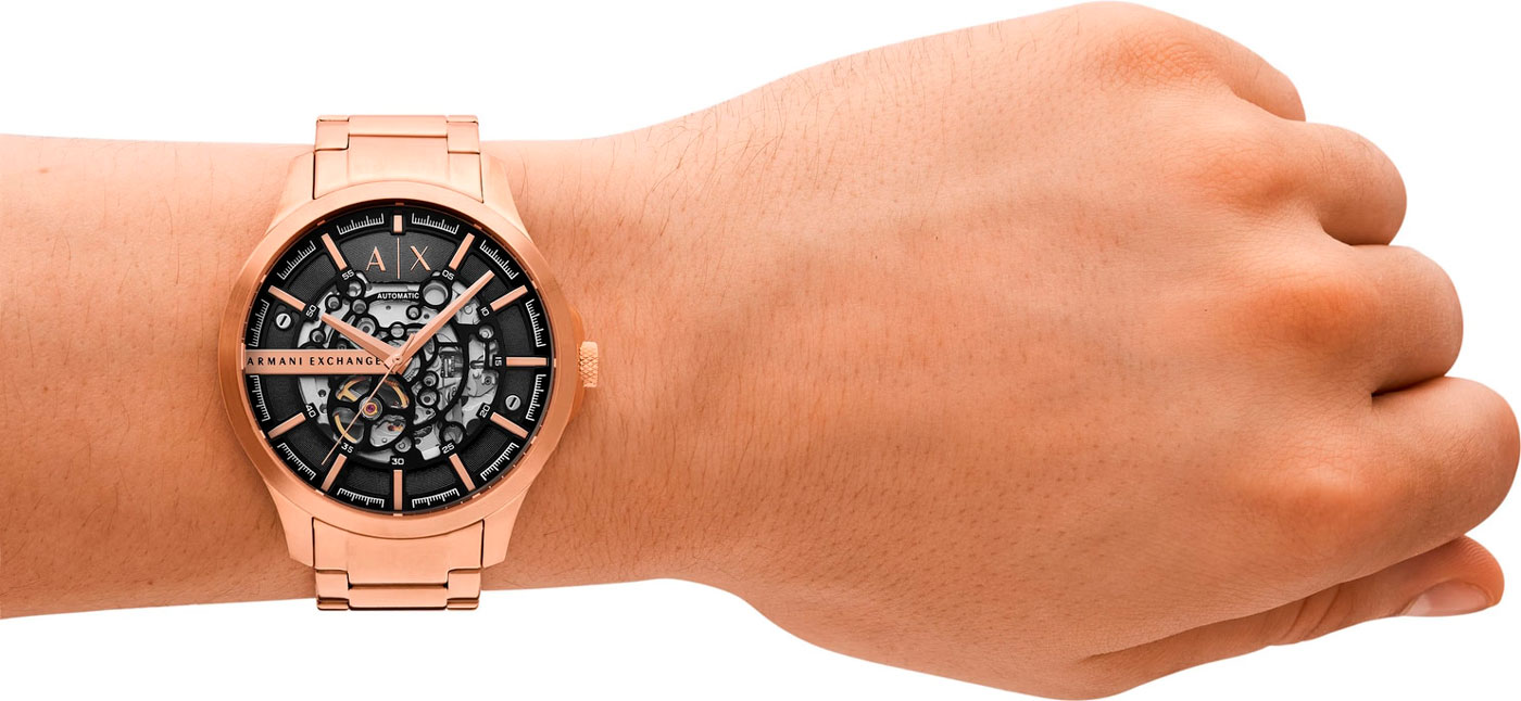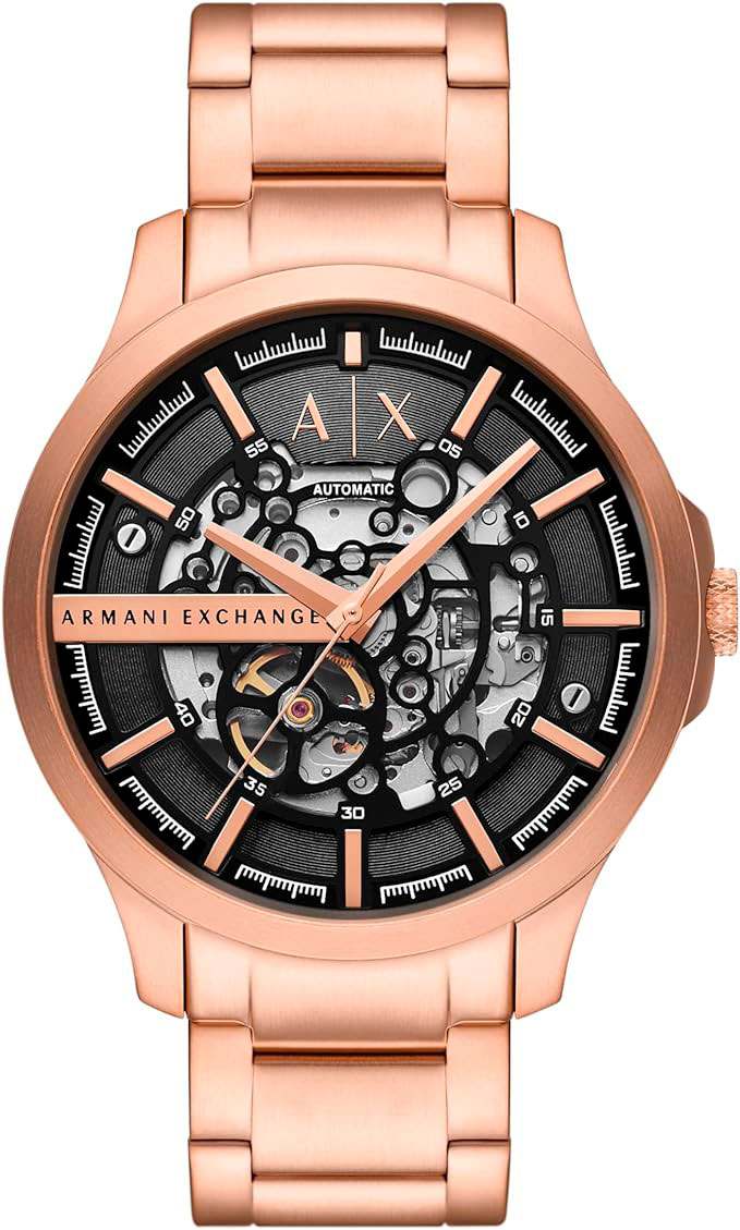 Мужские скелетонизированные часы Hampton. Круглый стальной корпус. Метки в виде штрихов. Заводная головка с защитой. Стальной браслет с раскладывающейся застежкой.