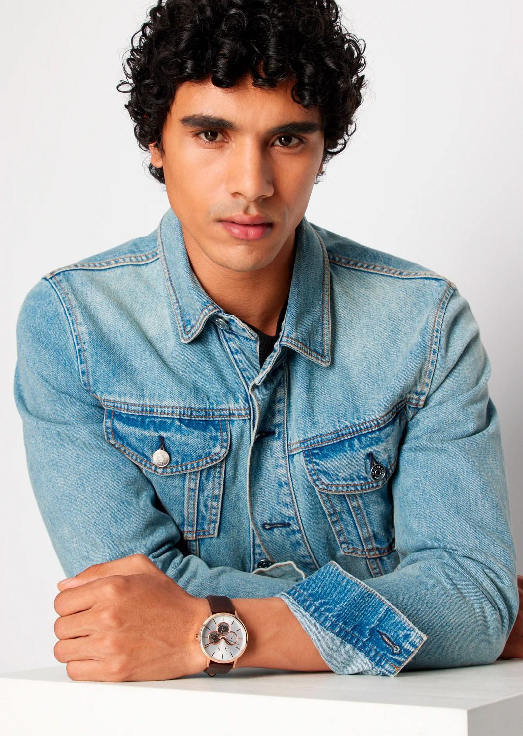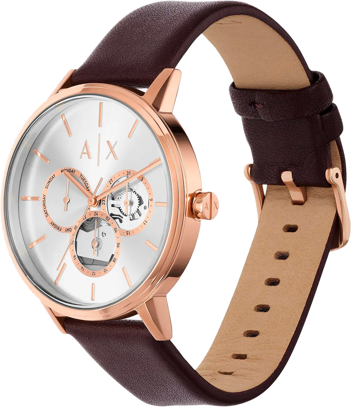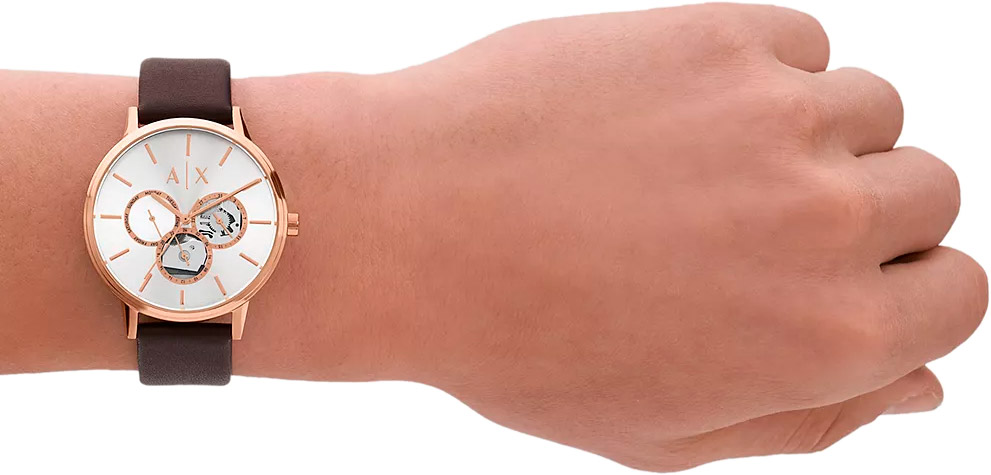 Элегантный мужской аксессуар незаменим при создании стильного и современного образа. Мужские часы с круглым стальным корпусом. 12-ти и 24-х часовой формат времени. Циферблат выполнен по технологии Sunray (солнечные лучи). Метки в виде штрихов. Число, день недели и 24-часовая шкала вынесены на отдельные циферблаты. Сквозь окошки на циферблате виден механизм. Ремешок из натуральной кожи с классической застежкой.
