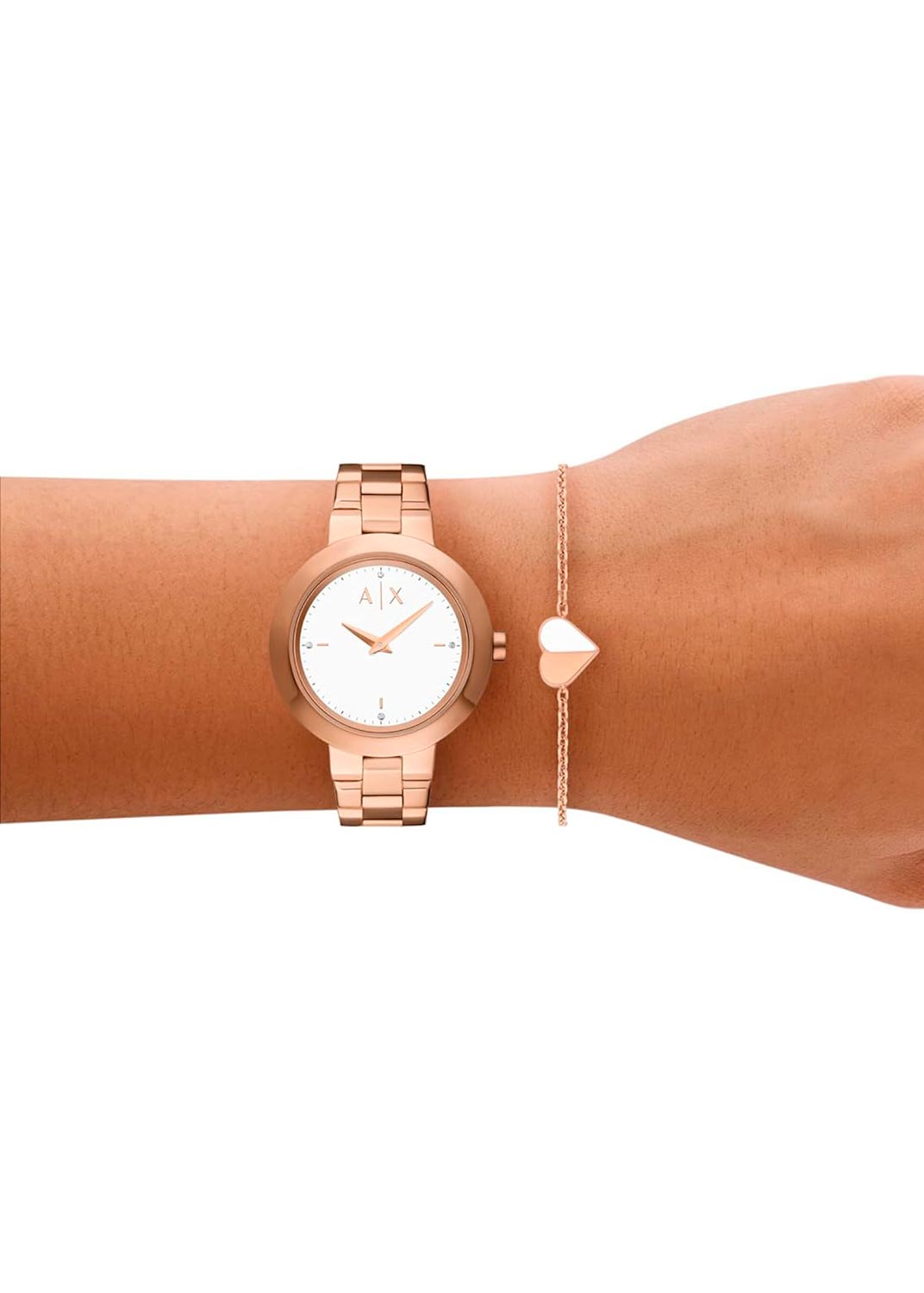 В комплекте браслет с подвеской в форме сердца с розовым IP покрытием.