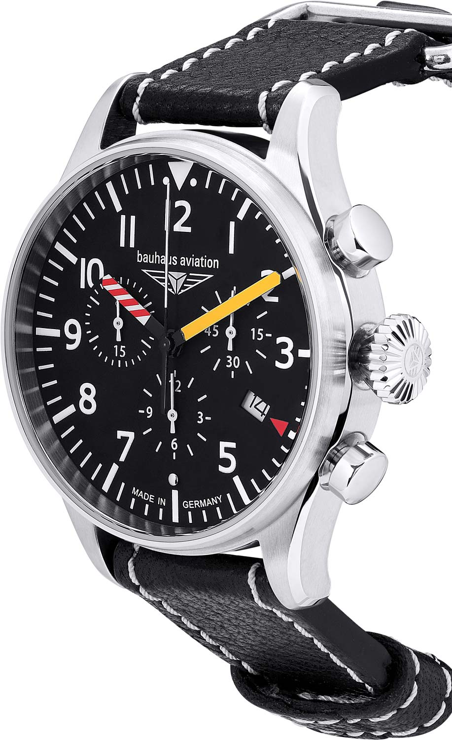 Функциональные мужские наручные часы-хронограф с секундомером Aviation Instrument с кварцевым механизмом. Круглый стальной корпус c матовой и полированной отделкой. Матовый циферблат. Метки в виде арабских цифр.