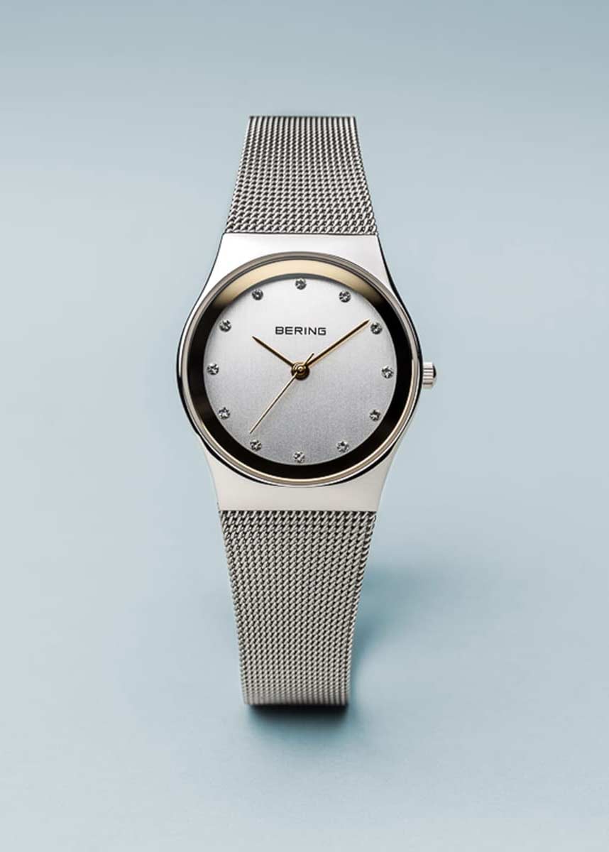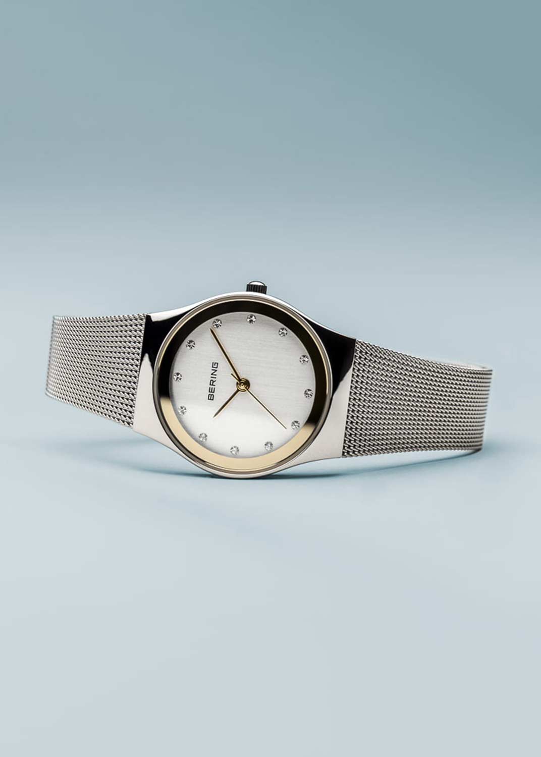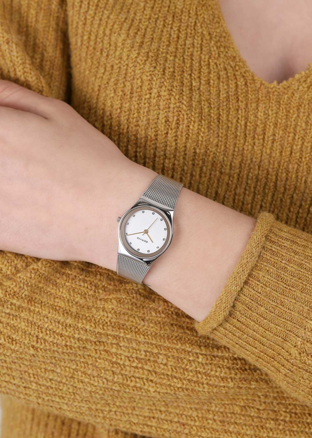 Ультратонкие женские наручные часы. Круглый стальной корпус. Циферблат защищен прочным сапфировым стеклом. Метки в виде точек с кристаллами Swarovski. Рифленая заводная головка. Стальной браслет миланского плетения. Застежка с фиксатором.