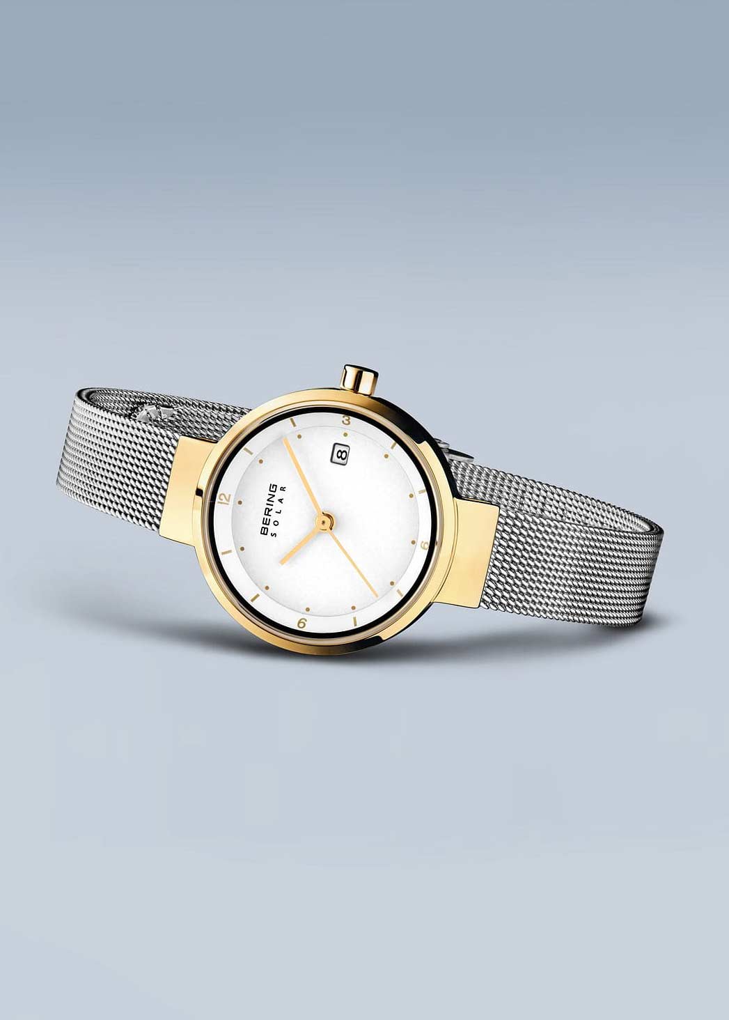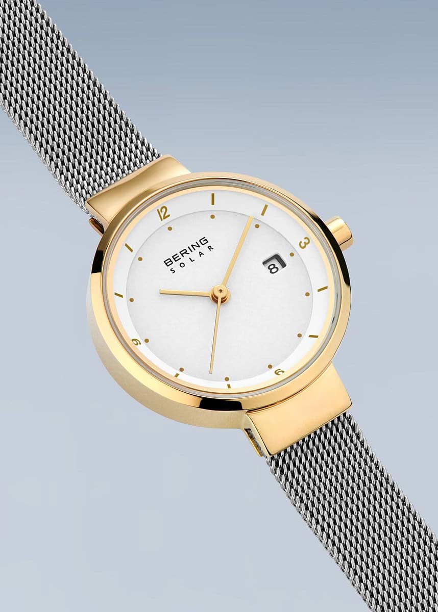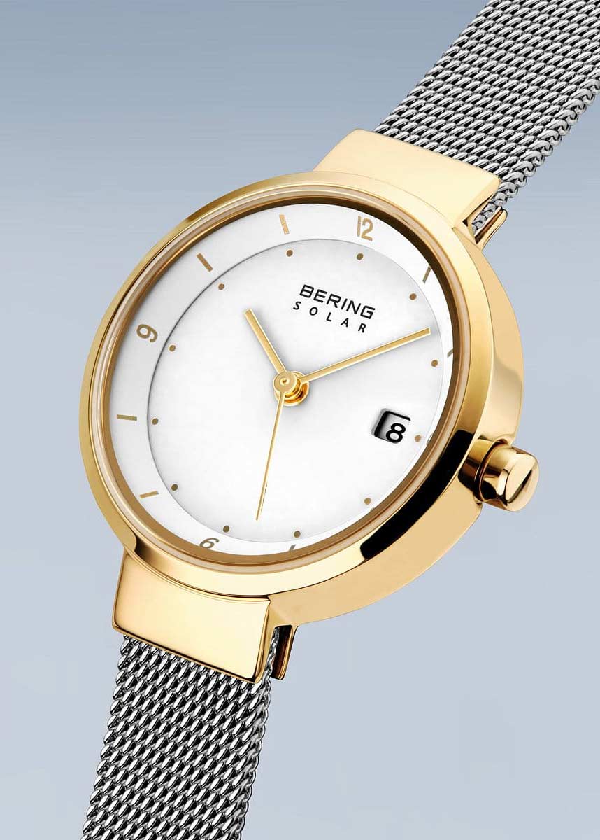 Женские наручные часы. Питание от солнечной энергии. Время работы без подзарядки 6-12 месяцев. Круглый стальной корпус. Циферблат защищен прочным сапфировым стеклом. Метки в виде штрихов, арабских цифр и точек.