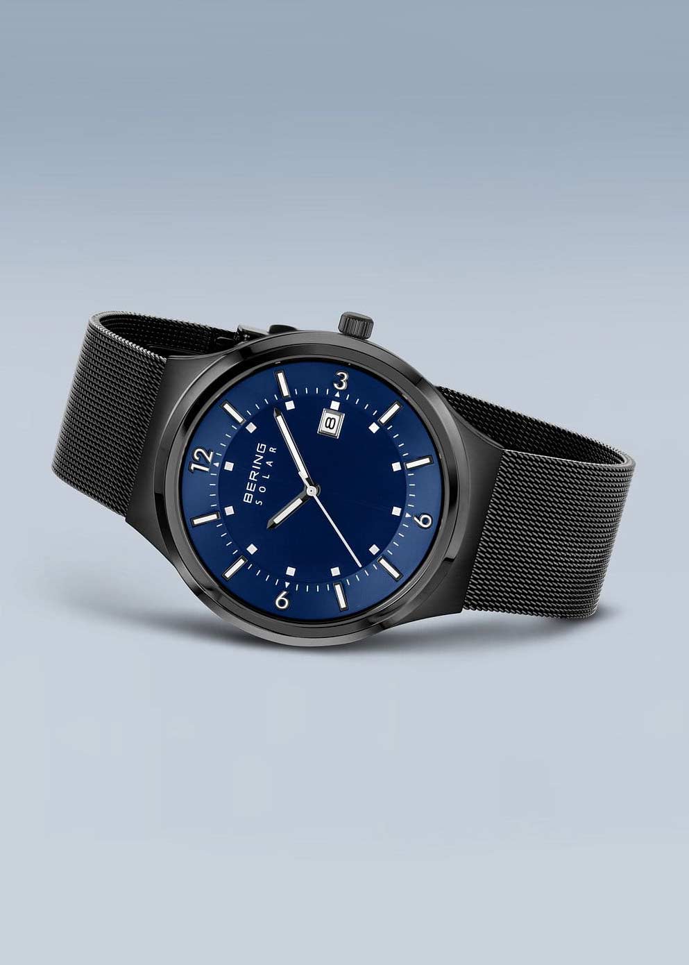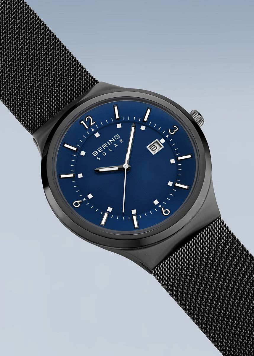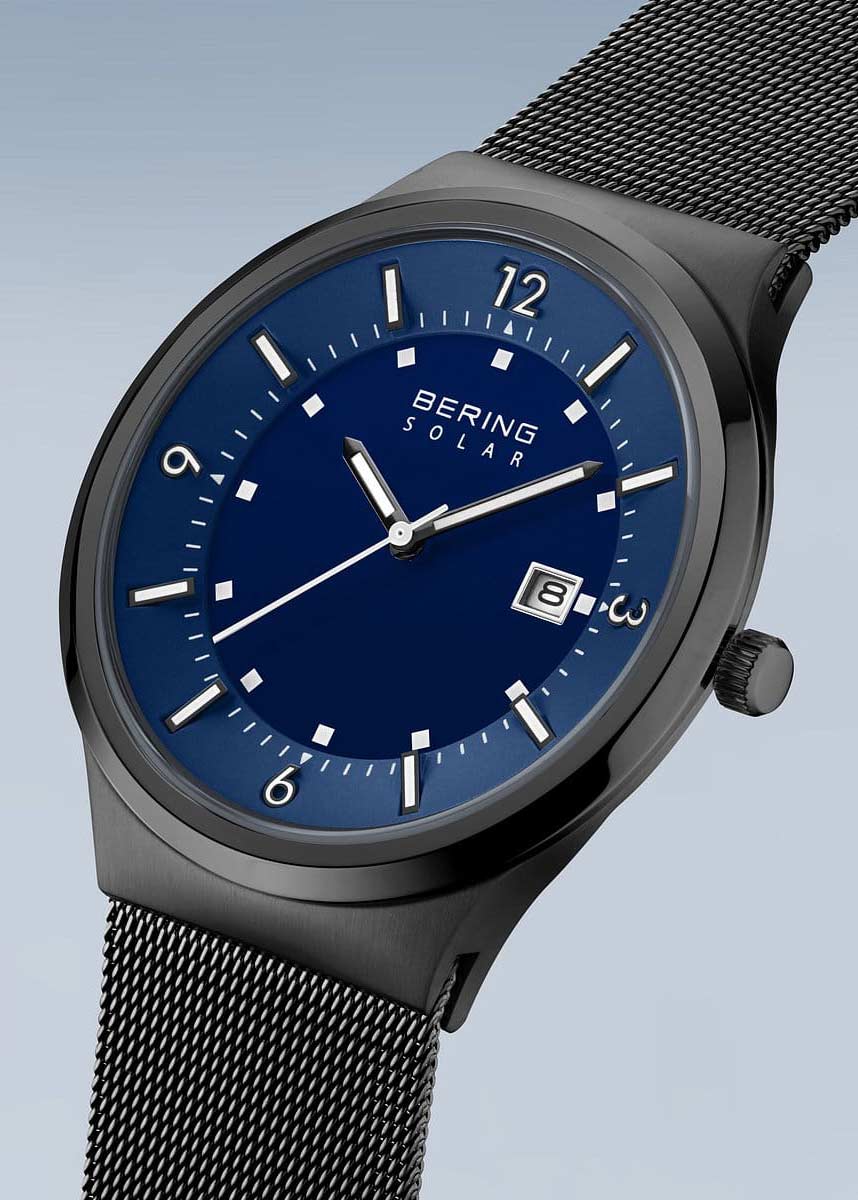 Мужские наручные часы. Питание от солнечной энергии. Время работы без подзарядки 6-12 месяцев. Круглый стальной корпус с сатинированной поверхностью. Циферблат защищен прочным сапфировым стеклом. Метки в виде точек, арабских цифр и штрихов.