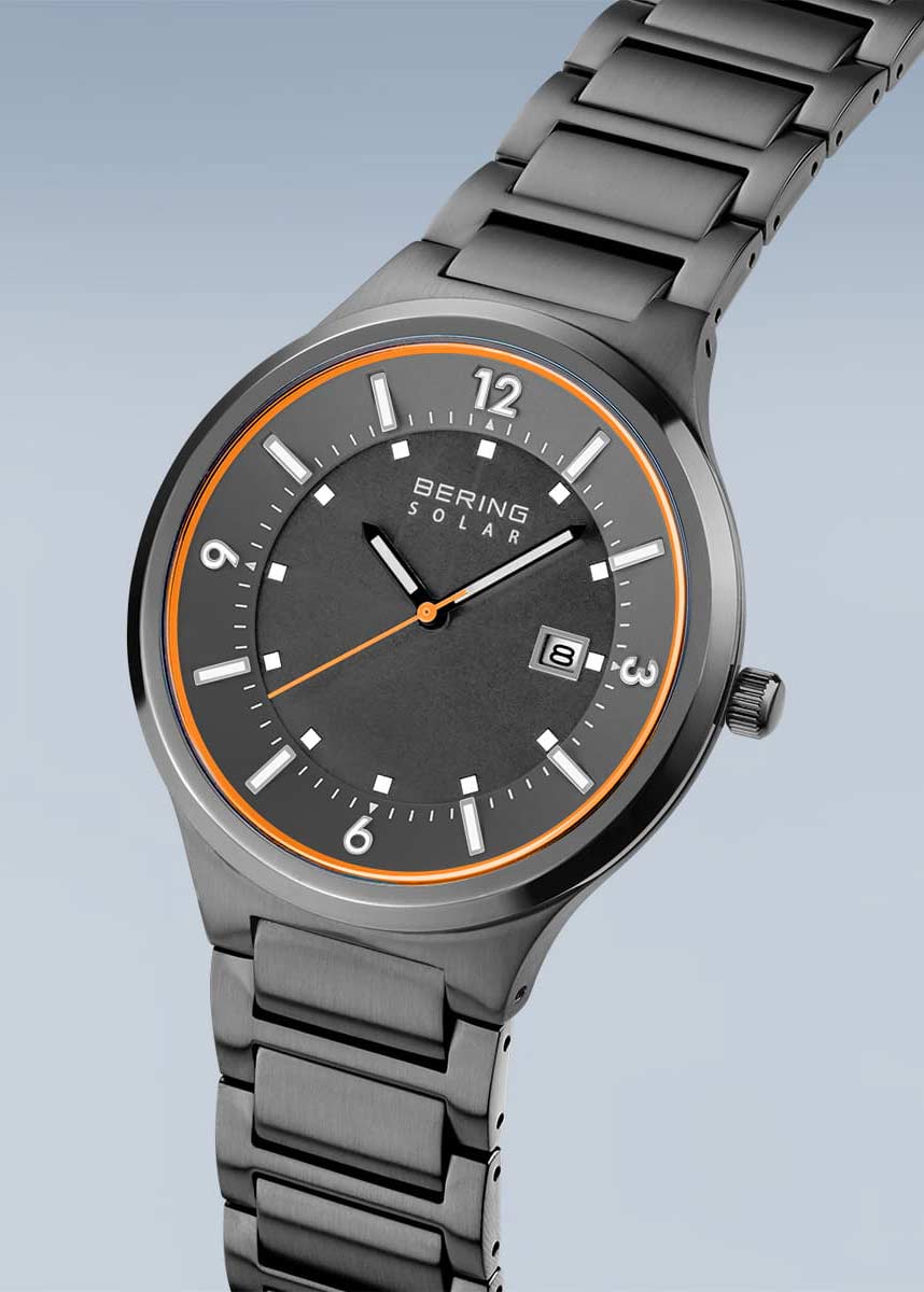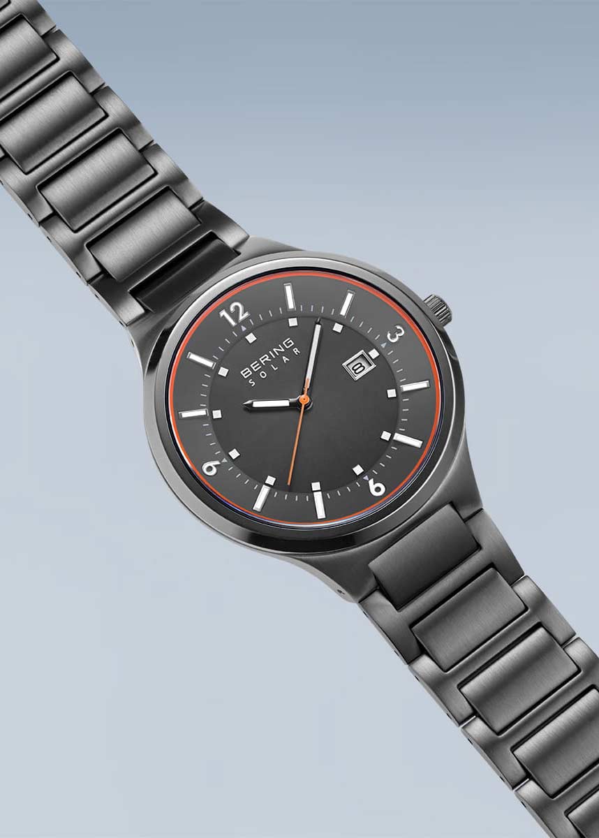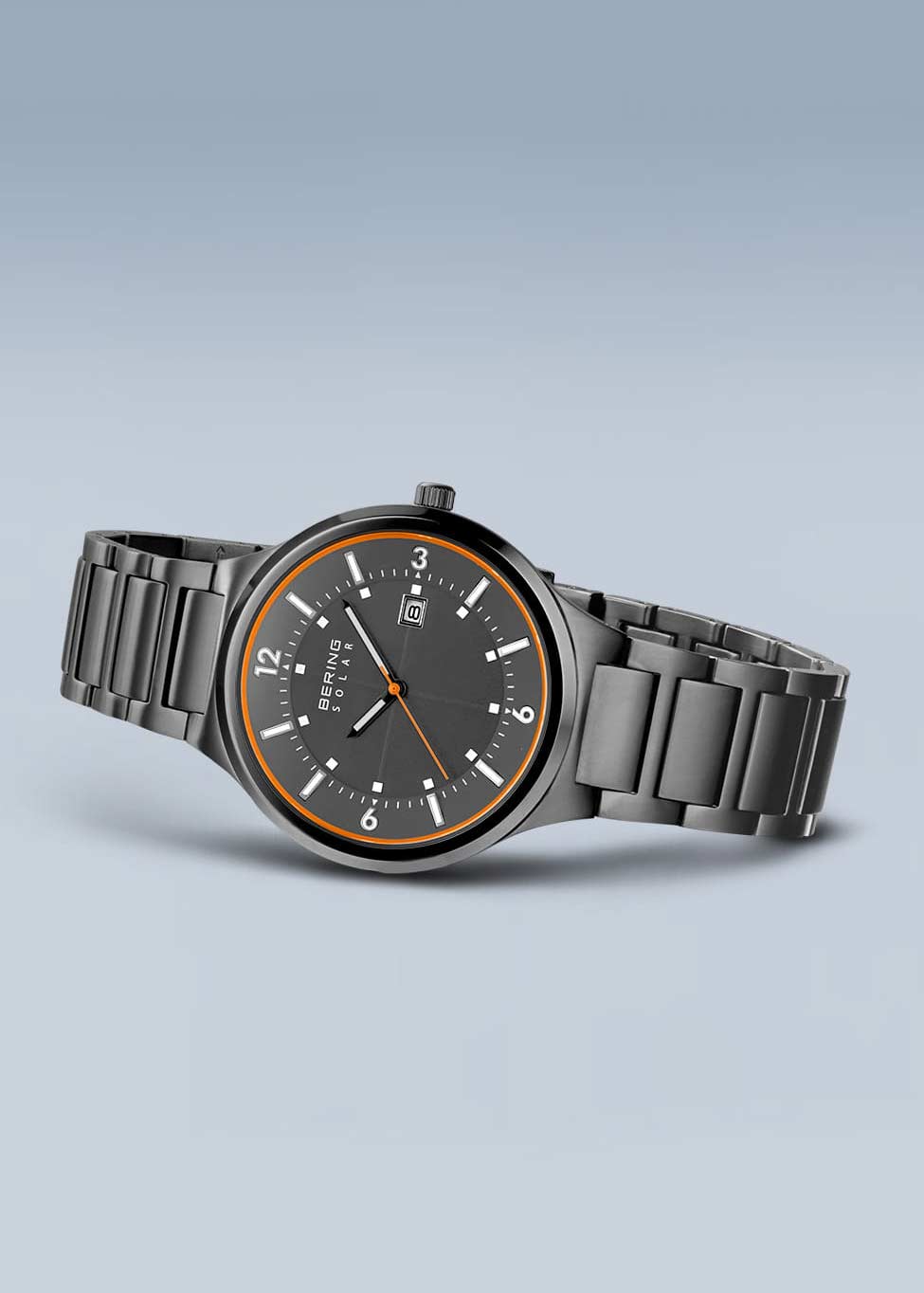 Мужские наручные часы. Питание от солнечной энергии. Время работы без подзарядки 6-12 месяцев. Круглый стальной корпус с сатинированной поверхностью. Циферблат защищен прочным сапфировым стеклом. Метки в виде точек, арабских цифр и штрихов.