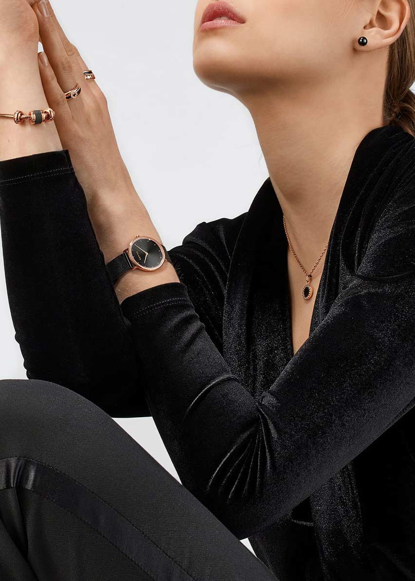 Ультратонкие женские наручные часы. Круглый стальной корпус с полированной поверхностью. Циферблат выполнен по технологии Sunray (солнечные лучи) и защищен прочным сапфировым стеклом. Метки в виде штрихов. Гладкая заводная головка. Стальной браслет миланского плетения. Застежка с фиксатором.