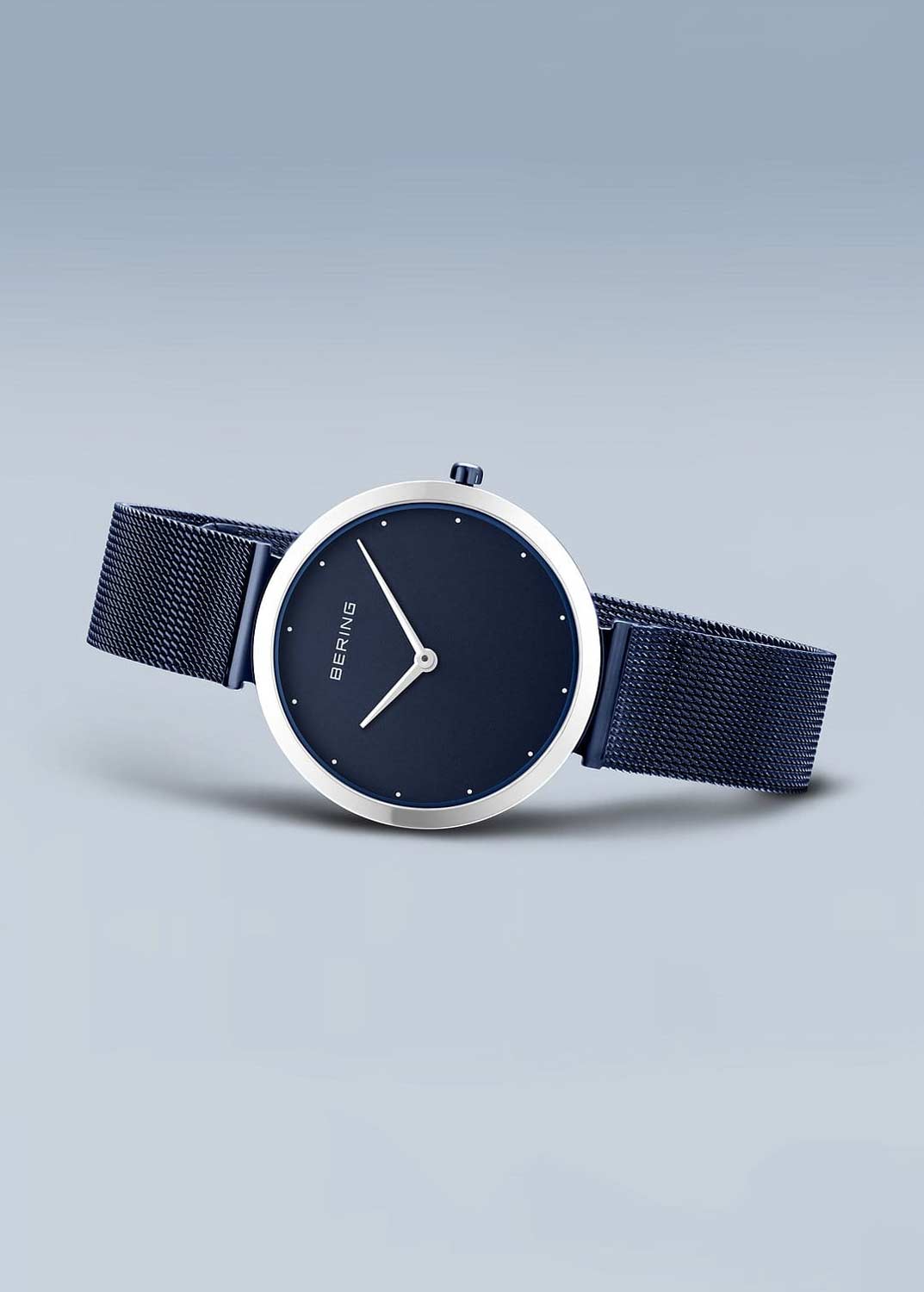 Женские наручные часы. Круглый стальной корпус с полированной поверхностью. Керамический безель. Циферблат защищен прочным сапфировым стеклом. Метки в виде точек. Гладкая заводная головка. Стальной браслет миланского плетения. Застежка с фиксатором.