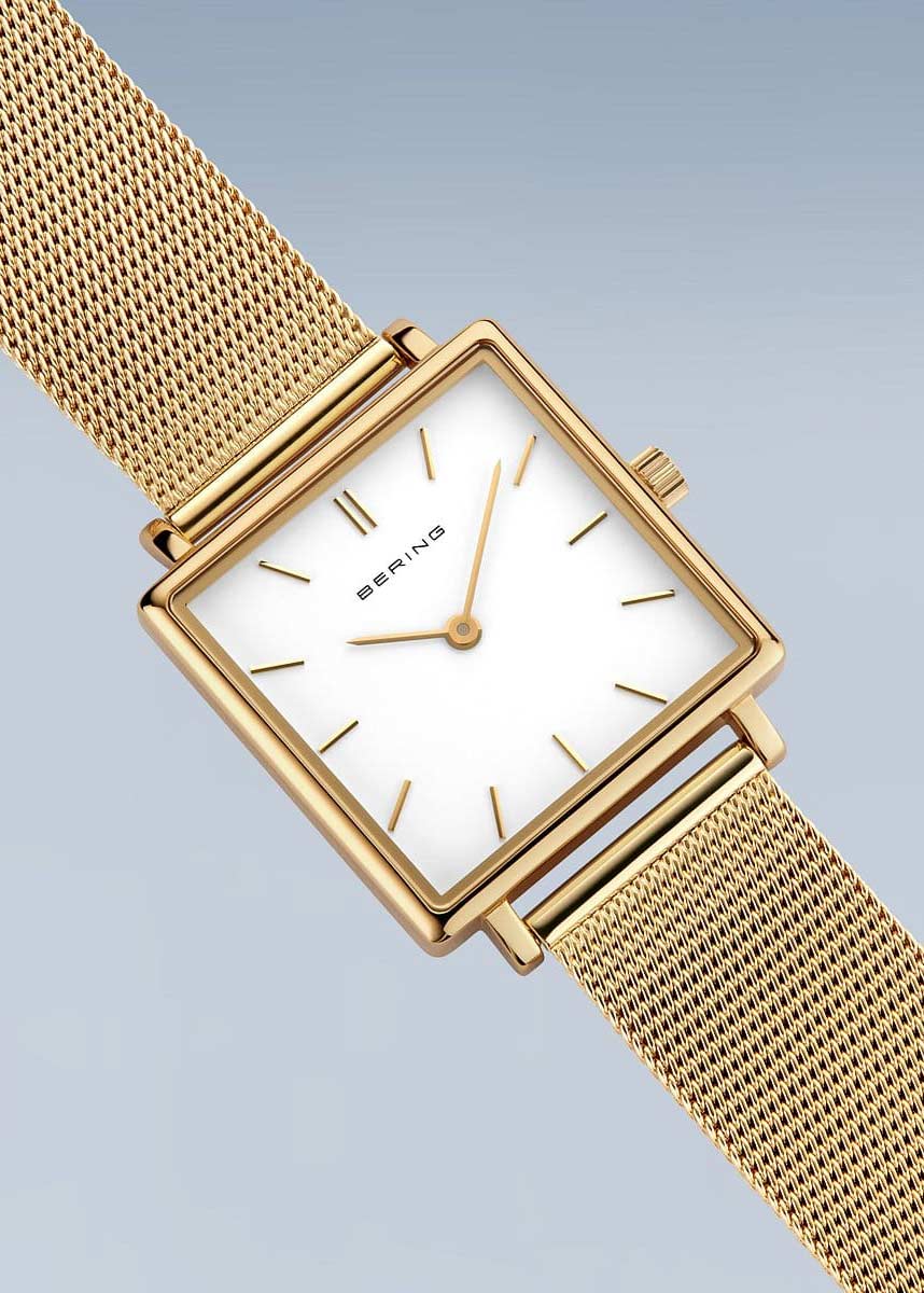Ультратонкие женские наручные часы. Квадратный стальной корпус с полированной поверхностью. Циферблат защищен прочным сапфировым стеклом. Метки в виде штрихов. Рифленая заводная головка. Стальной браслет миланского плетения. Застежка с фиксатором.