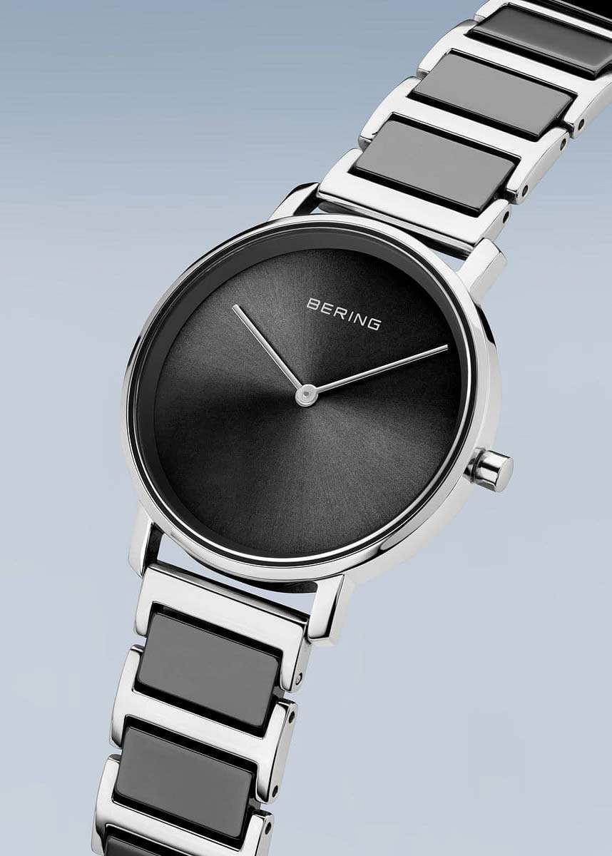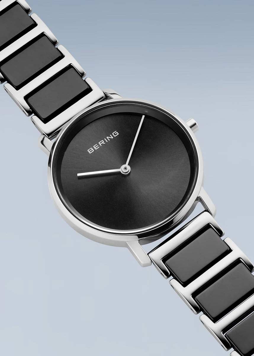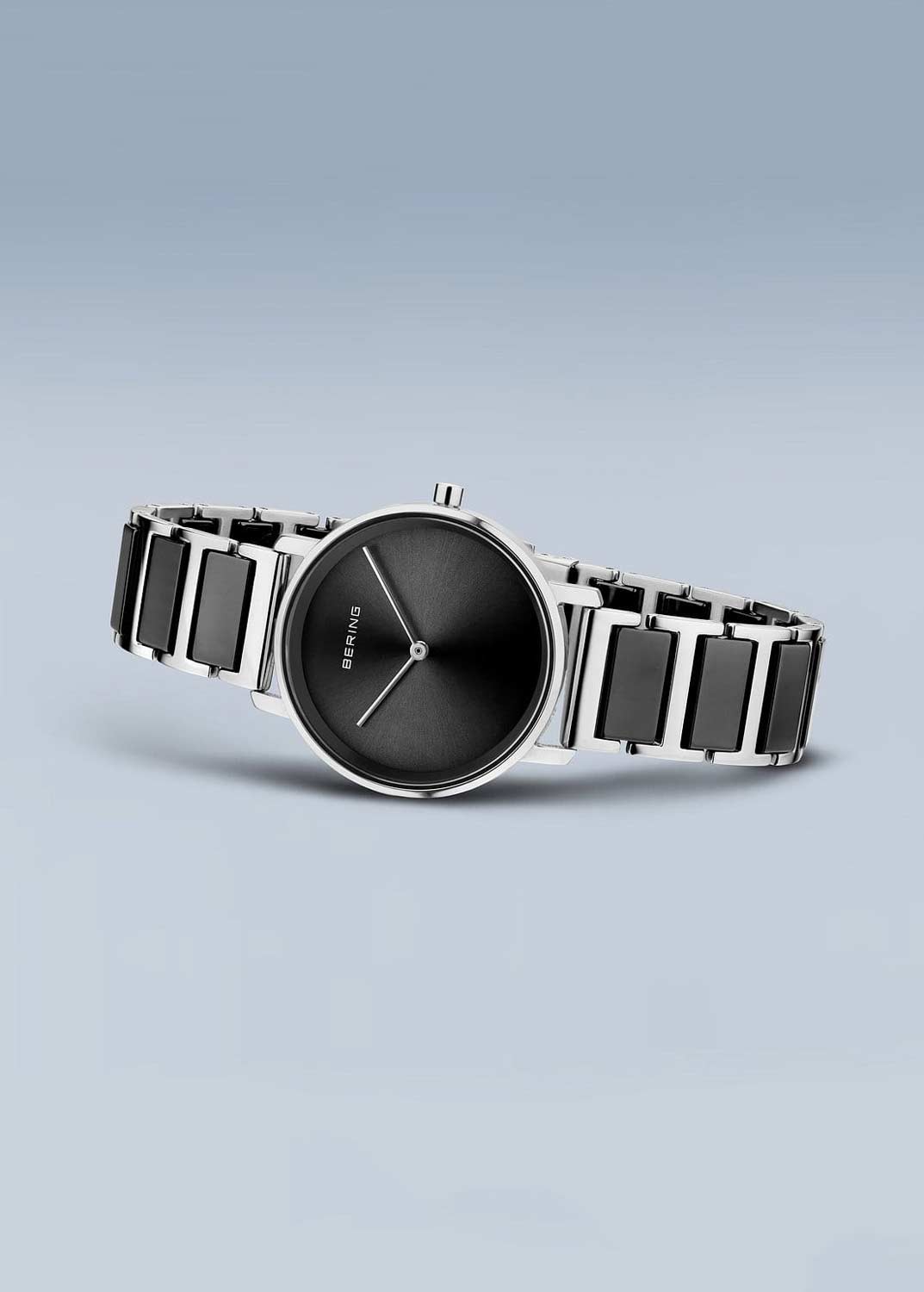 Ультратонкие женские наручные часы. Круглый стальной корпус с полированной поверхностью. Циферблат без меток выполнен по технологии Sunray (солнечные лучи) и защищен прочным сапфировым стеклом. Гладкая заводная головка. Стальной браслет с керамическими звеньями. Раскладывающаяся застежка.