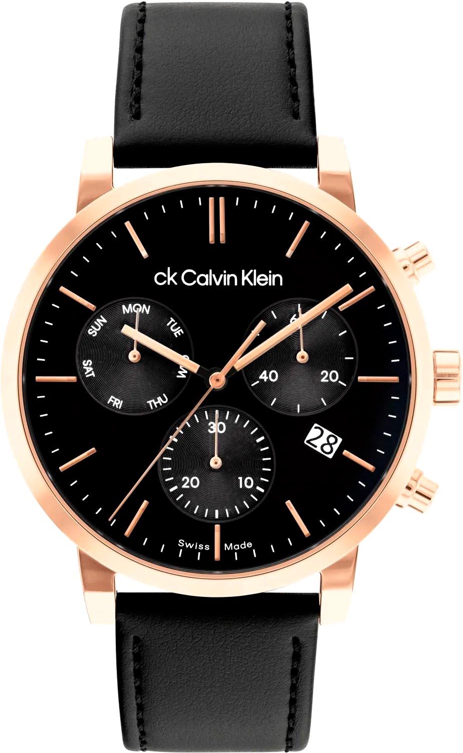 Строгие и функциональные часы станут идеальным и надежным вариантом на каждый день. Мужские наручные часы-хронограф с секундомером Swiss Gauge с круглым стальным корпусом. Заводная головка украшена логотипом ''ck''. Удобный кожаный ремешок с классической застежкой.