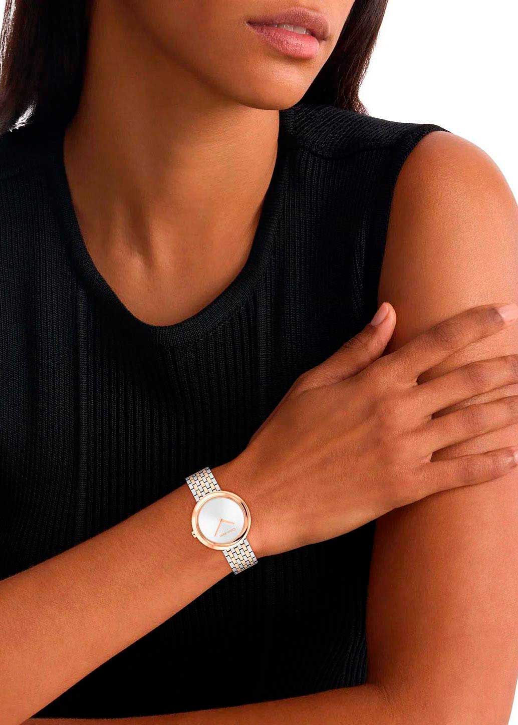 Гладкая заводная головка украшена логотипом ''CK''. Надежный стальной браслет с раскладывающейся застежкой с двумя кнопками и логотипом бренда Calvin Klein.