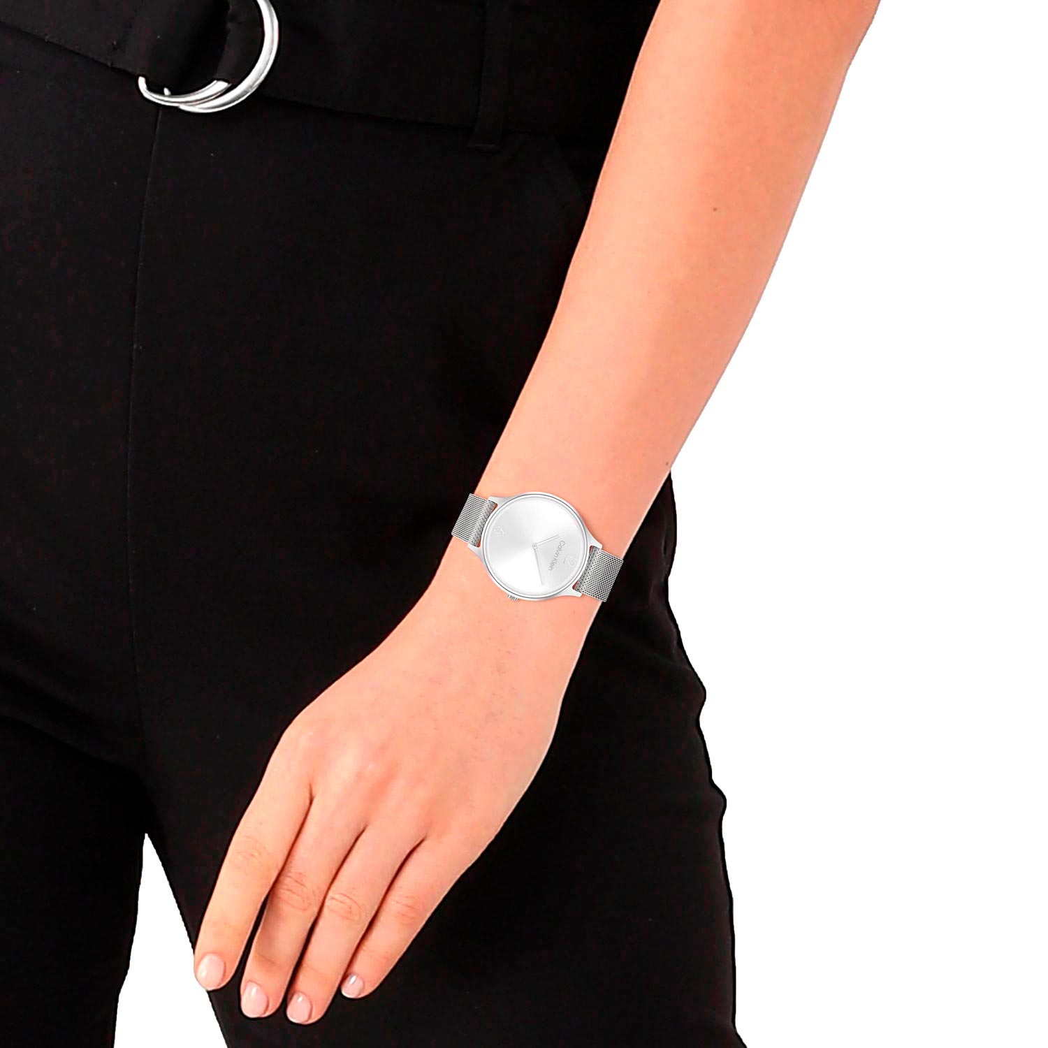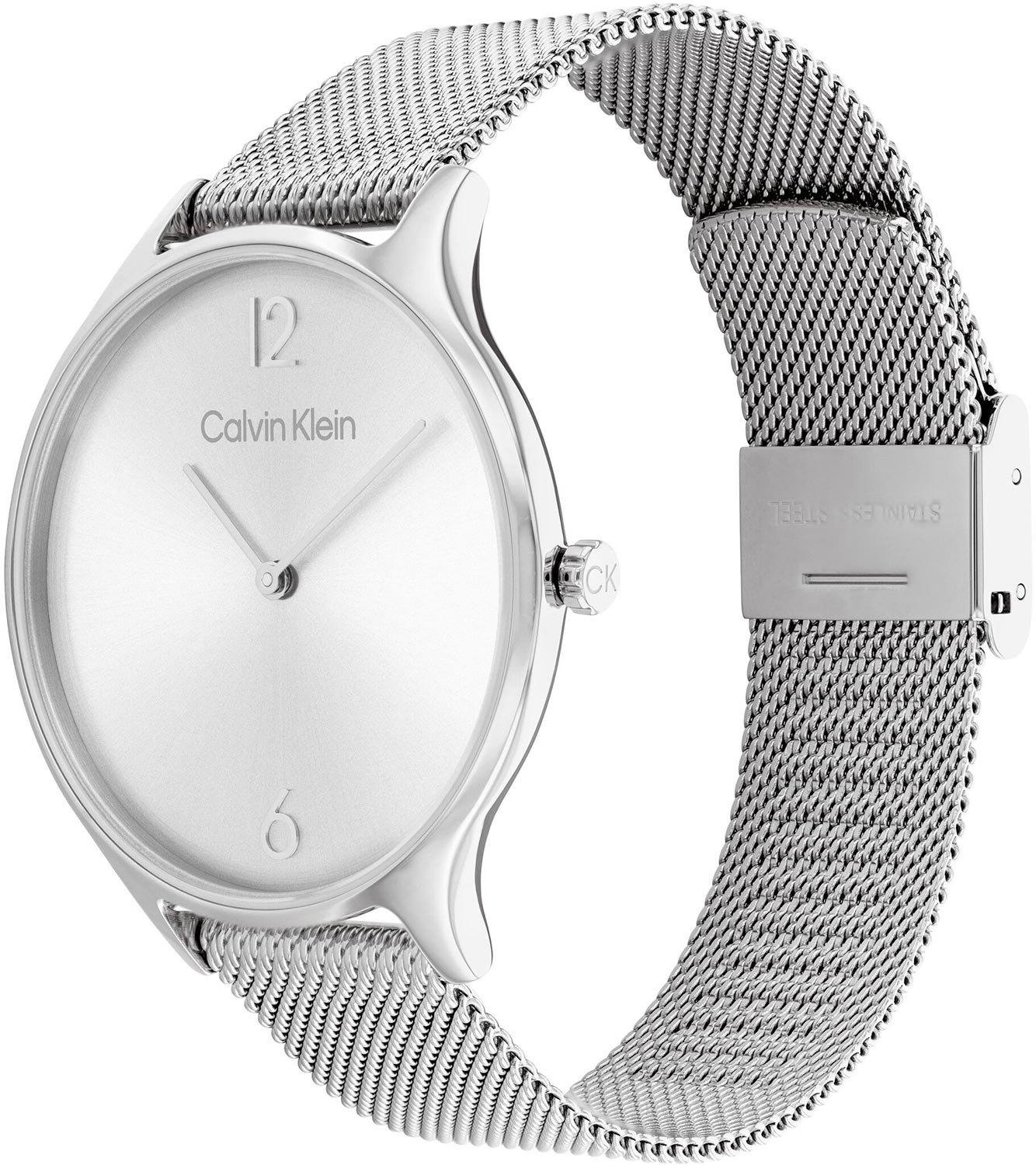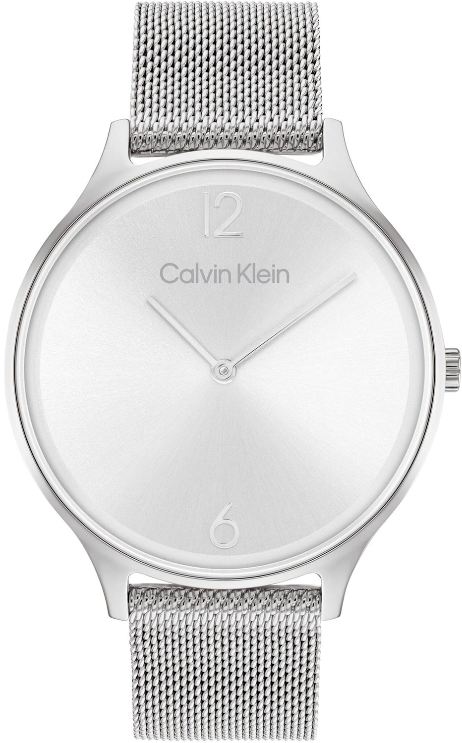 Аккуратный лаконичный дизайн и четкие линии этих стильных часов позволяют носить их с любым образом. Наручные женские часы Timeless Mesh. Круглый стальной корпус с полированной отделкой. Циферблат выполнен по технологии Sunray (солнечные лучи) и украшен фирменным логотипом Calvin Klein. Накладные метки в виде арабских цифр. Прямоугольные стрелки в стиле Baton. Рифленая заводная головка украшена логотипом ''ck''. Удобный и надежный стальной браслет миланского плетения с регулируемой застежкой.