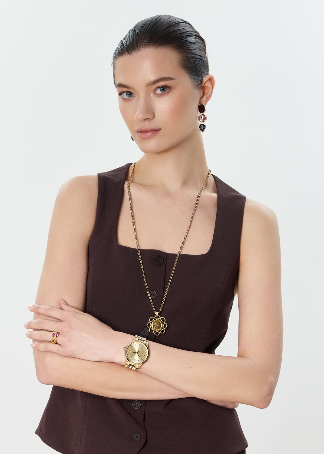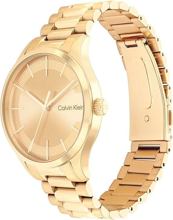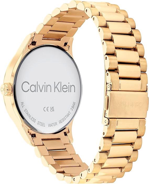 Этот стильный аксессуар прекрасно подойдет для повседневного образа, подчеркивая индивидуальность своего обладателя. Наручные кварцевые часы унисекс. Круглый стальной корпус. Циферблат с метками в виде штрихов украшен фирменным логотипом ''Calvin Klein''. Рифленая заводная головка. Стальной браслет с раскладывающейся застежкой.