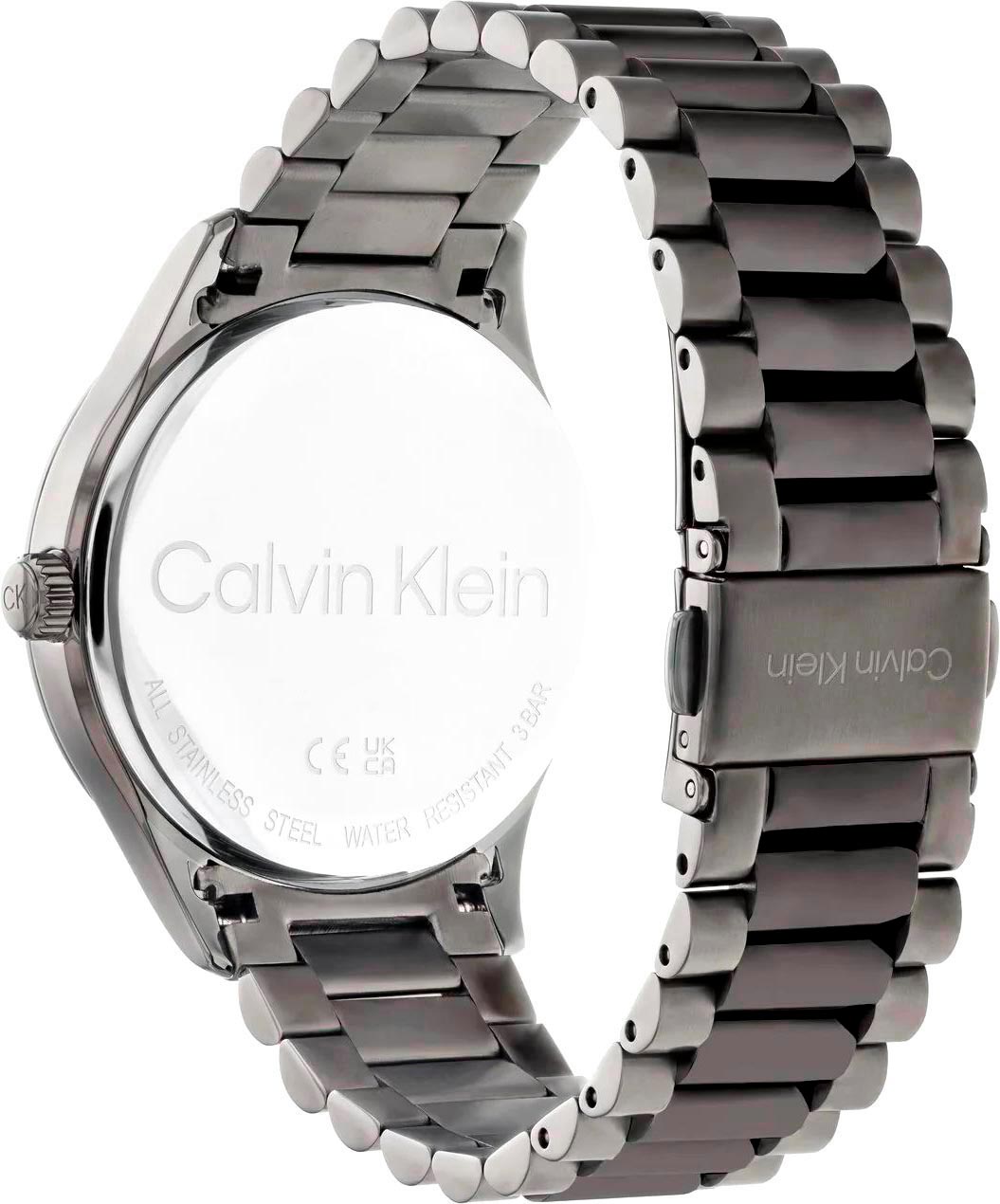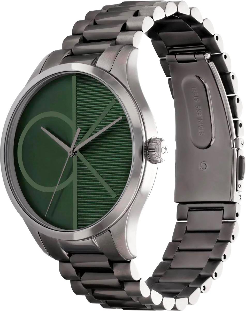 Этот стильный аксессуар придаст вашему времени уверенного темпа. Идеальный вариант для безупречного образа. Кварцевые наручные часы унисекс с круглым стальным корпусом. Циферблат без меток, разделен на две части - матовую и структурную. Заводная головка украшена логотипом ''ck''. Браслет миланского плетения.