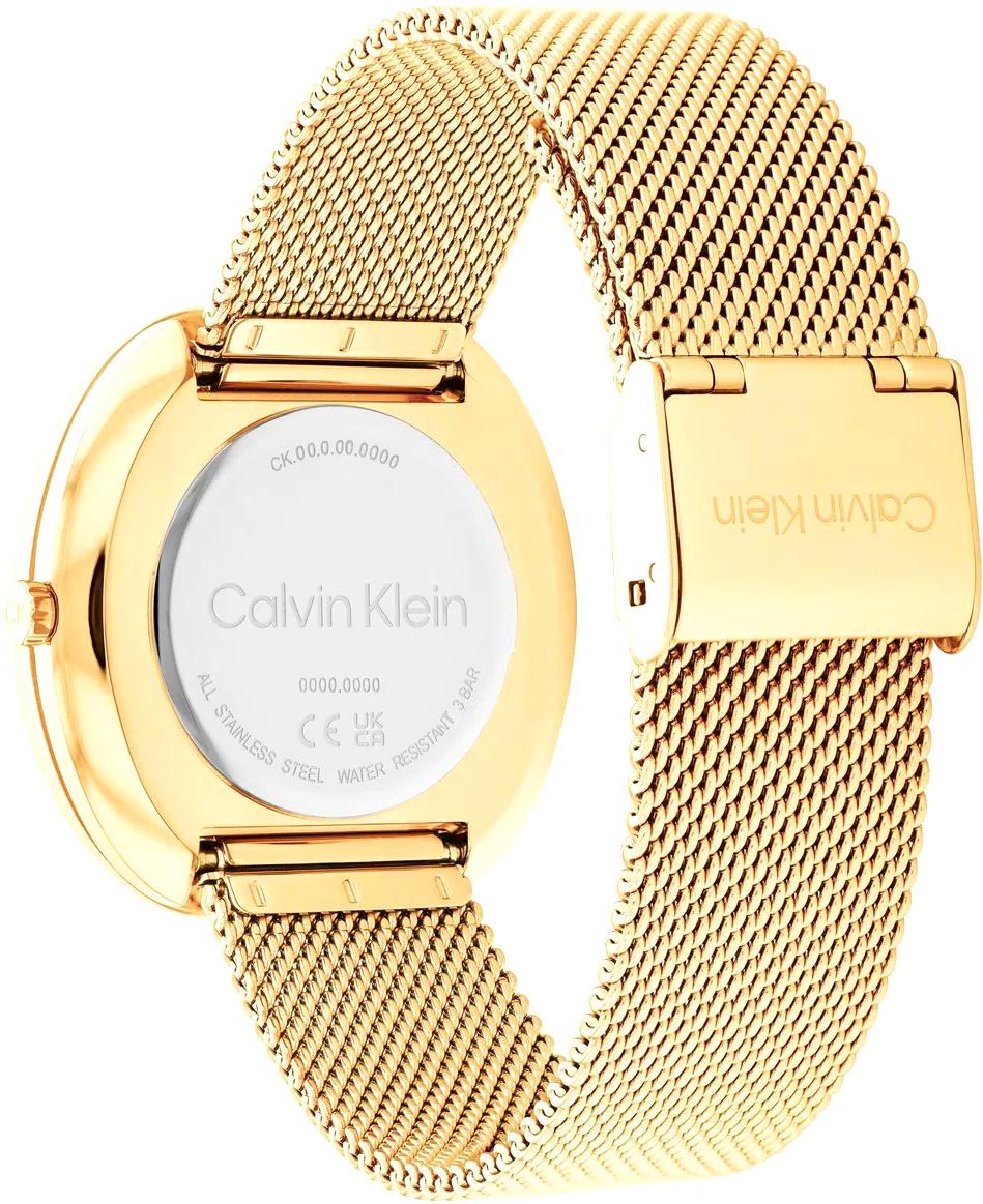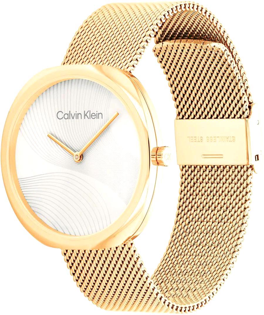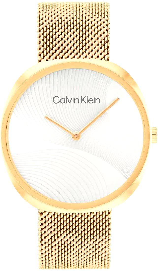 Утонченный дизайн циферблата подчеркнет современный стиль своей очаровательной обладательницы. Женские наручные часы с круглым стальным корпусом. Структурный циферблат с фирменным логотипом Calvin Klein. Без меток. Заводная головка украшена логотипом ''ck''. Браслет миланского плетения.